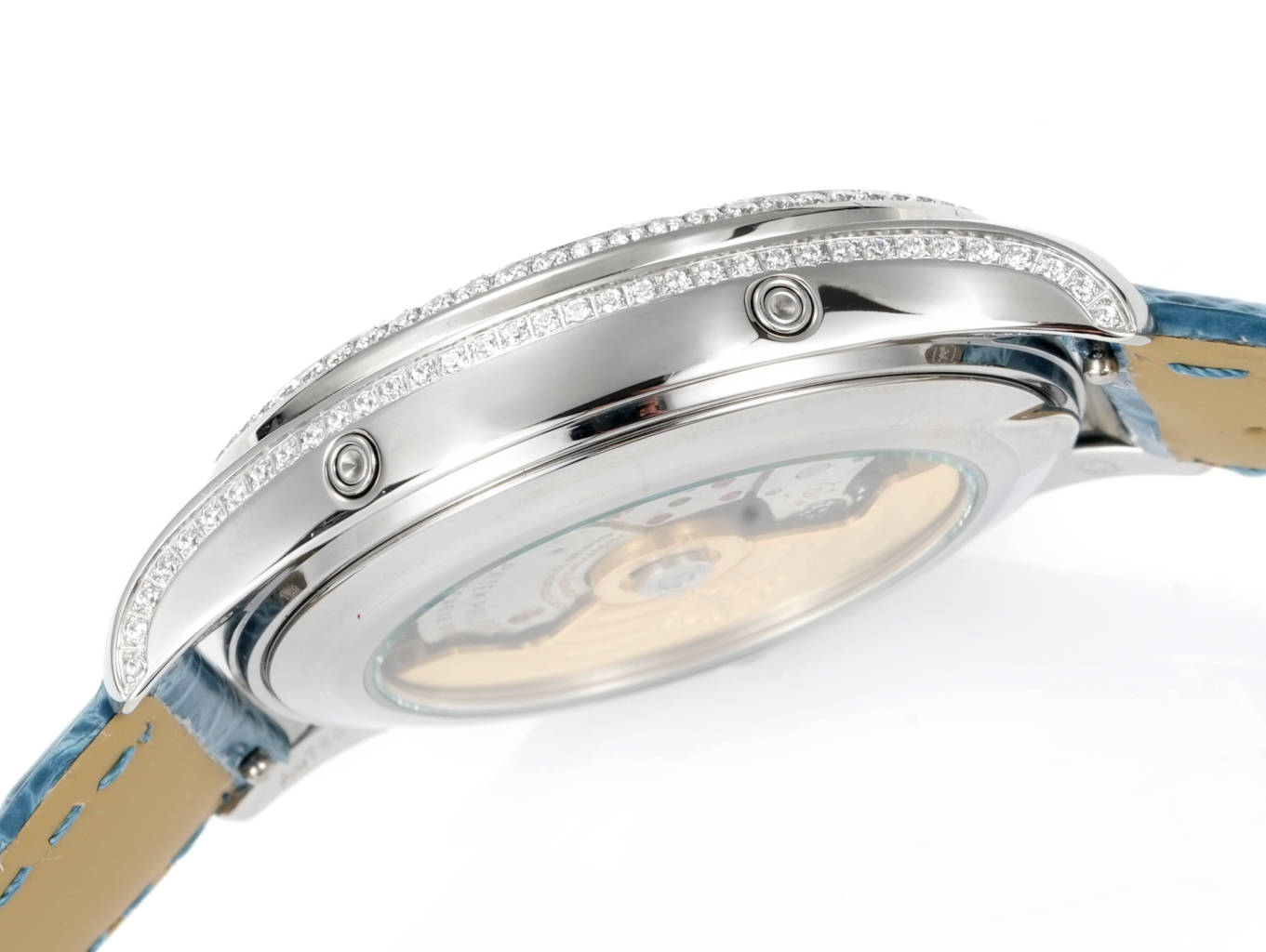 | Patek Philippe Complications 38mm Blue Dial Steel Diamond Bezel Blue Leather Strap 4947G-001 Woman Ladies | |