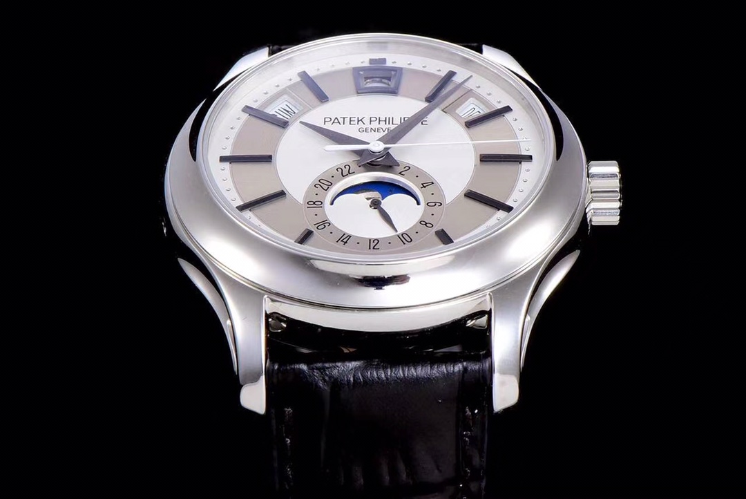 | Patek Philippe Complications 40mm Silver Gray Dial Steel Bezel Black Leather Strap 5205G-001 | |