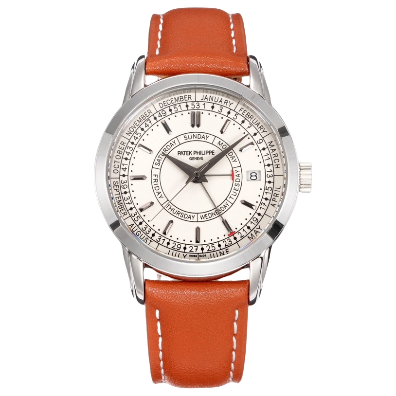 Patek Philippe Complications 40mm White Dial Steel Bezel Brown Leather Strap 5212A-001