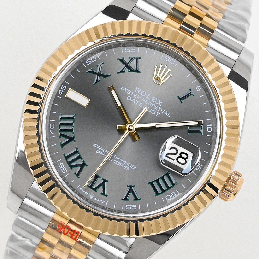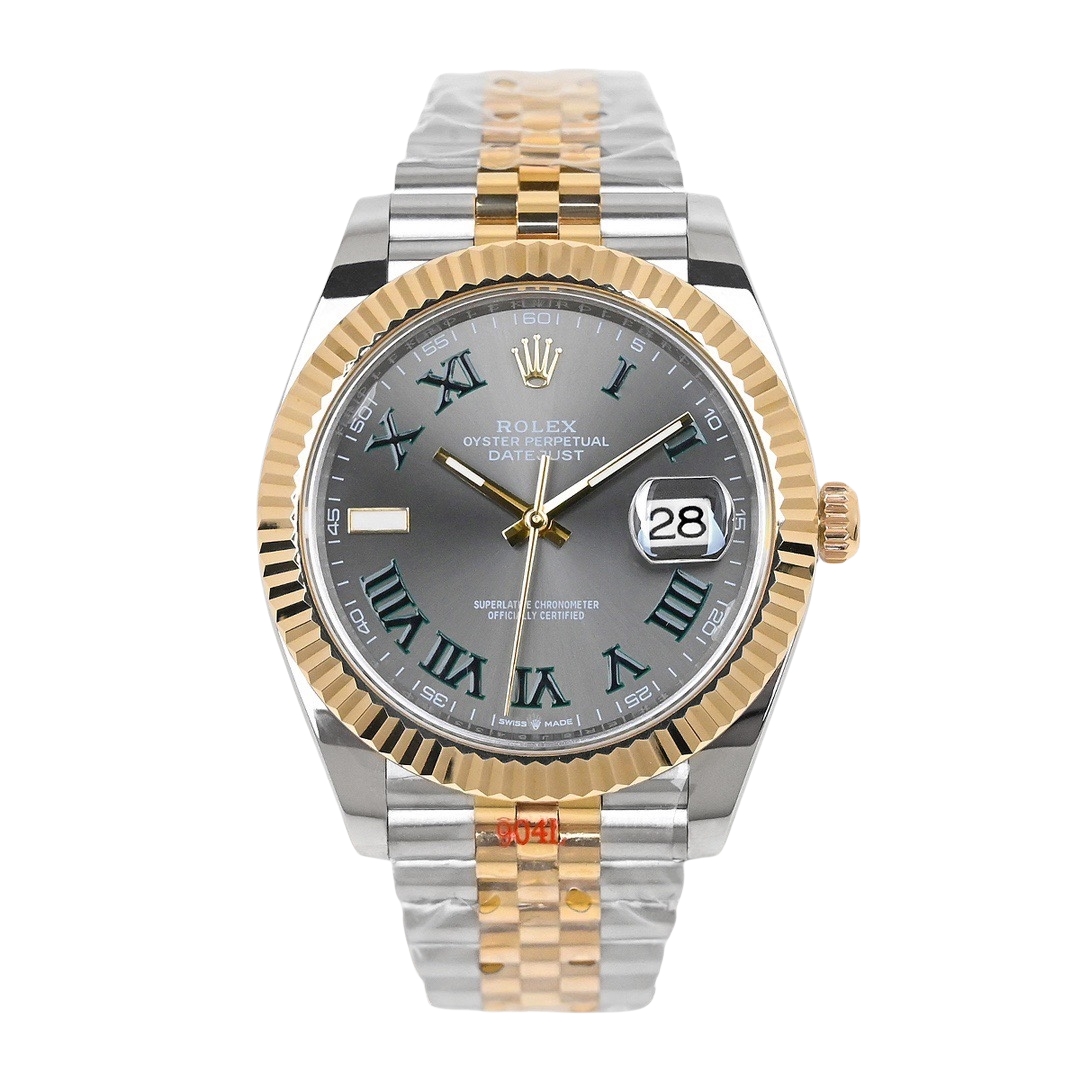 Rolex Datejust 41mm Green Roman Numerals Grey Dial Yellow Gold & Steel Bezel 126333-0020