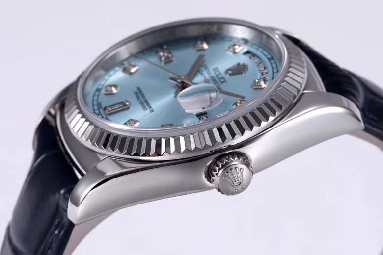 Rolex Day-Date 36mm 40mm Dial Diamond Ice Blue Platinum Blue Leather 118139