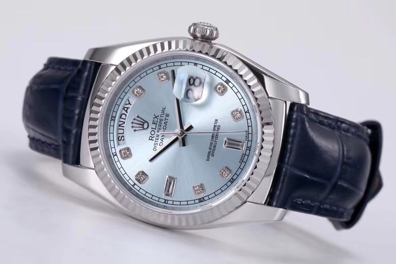 Rolex Day-Date 36mm 40mm Dial Diamond Ice Blue White Gold Blue Leather 118139