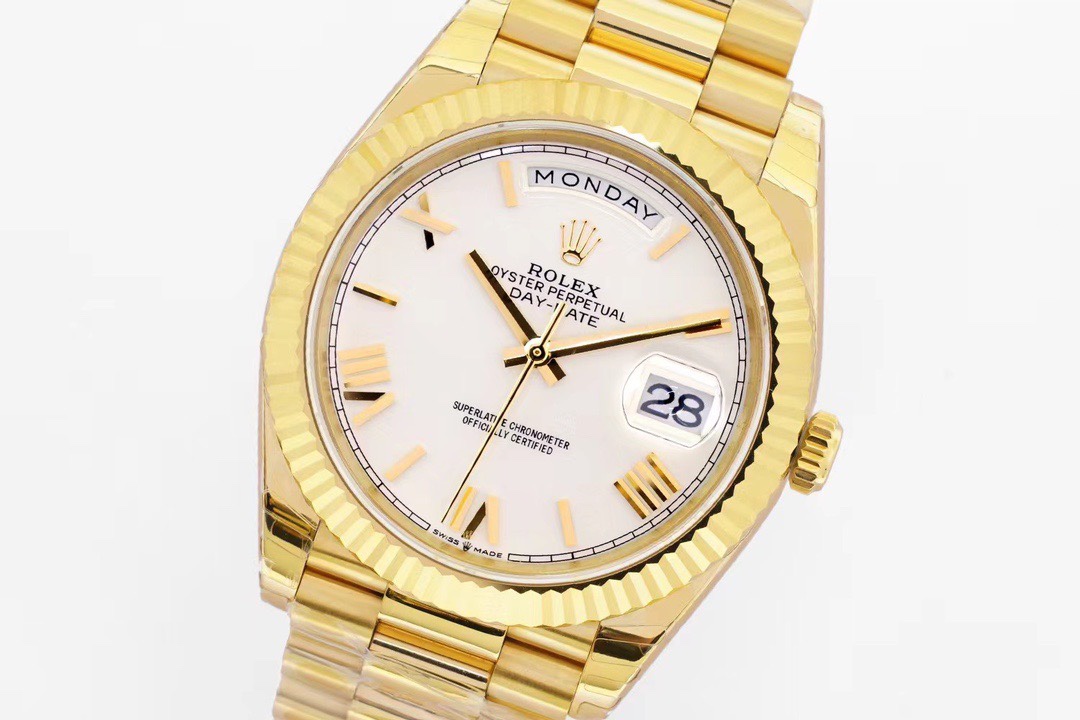 | Rolex Day-Date 36mm 40mm Dial White Yellow Gold Roman Numeral 228238-0042 | |