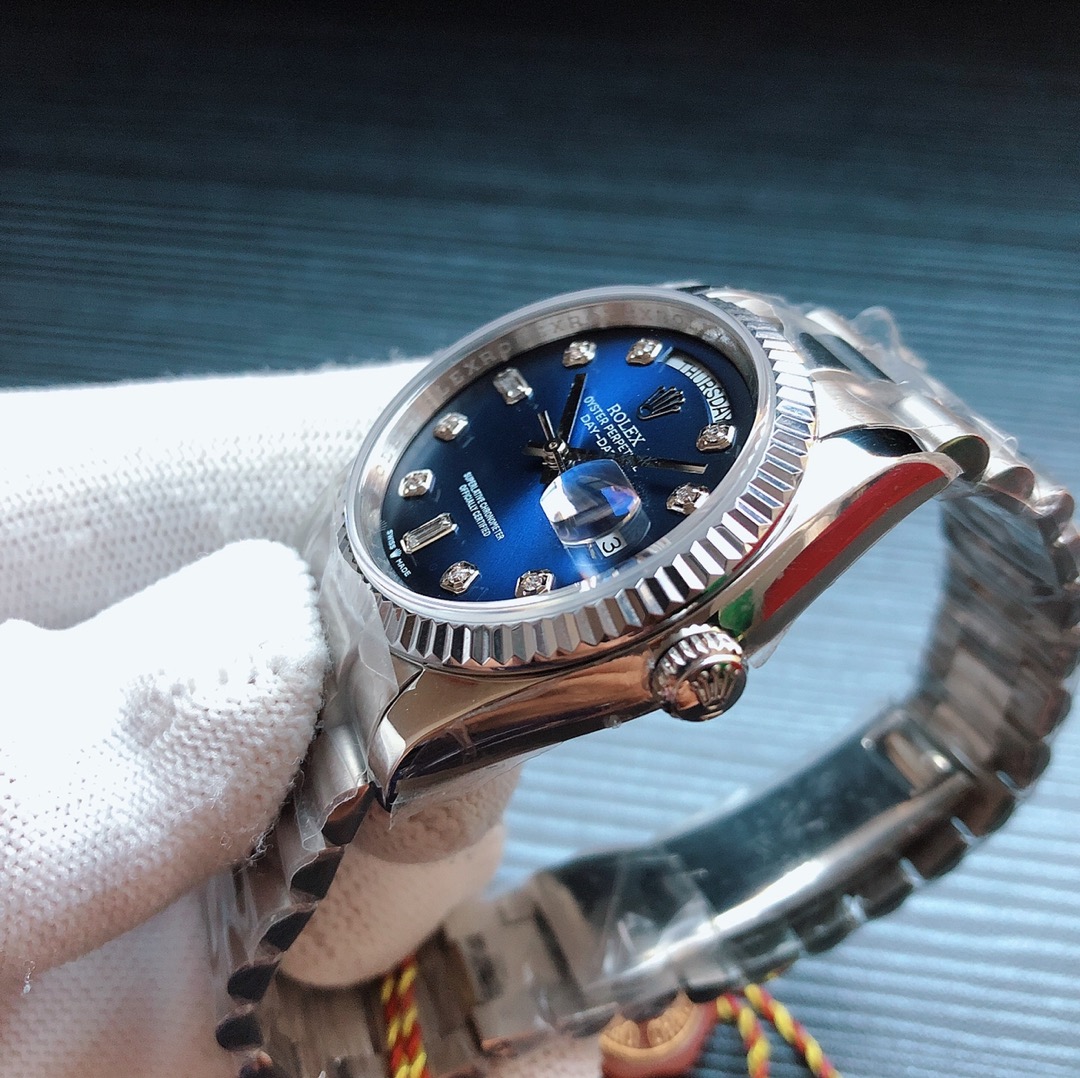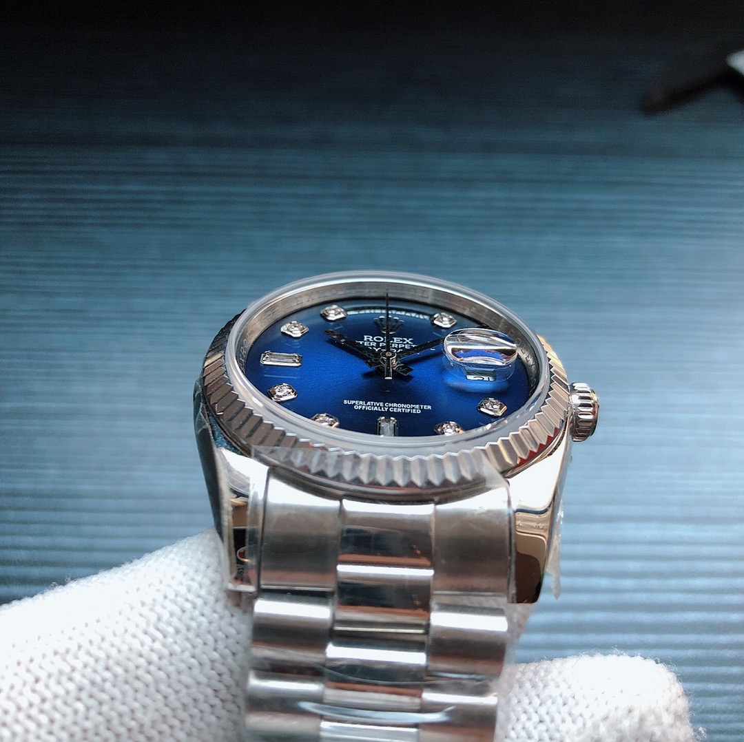 | Rolex Day-Date 36mm Dial Blue Platinum Diamond 128239-0023 | |
