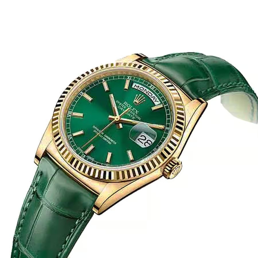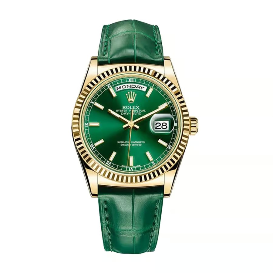 Rolex Daydate 36mm Dial Green Yellow Gold Green Leather 118138-0003