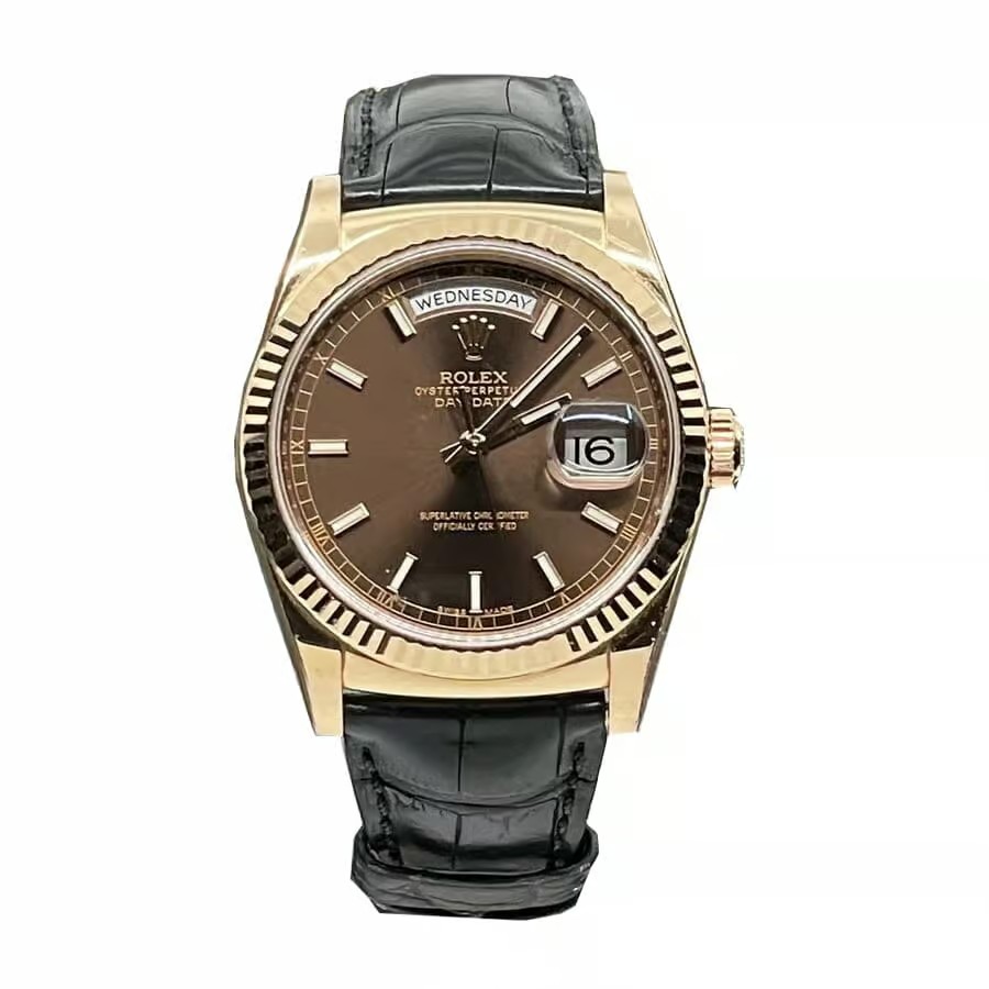 Rolex Day-Date 36mm Dial Brown Yellow Gold Black Leather 118139