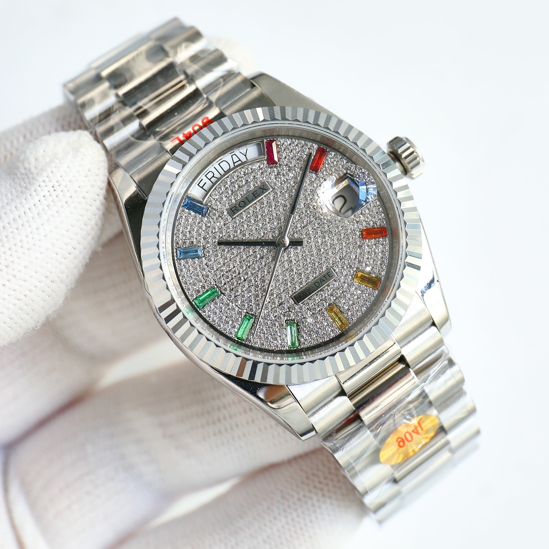Rolex Day-Date 36mm Dial Rainbow Diamond Platinum Gen 128349-0006