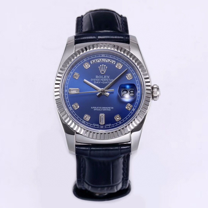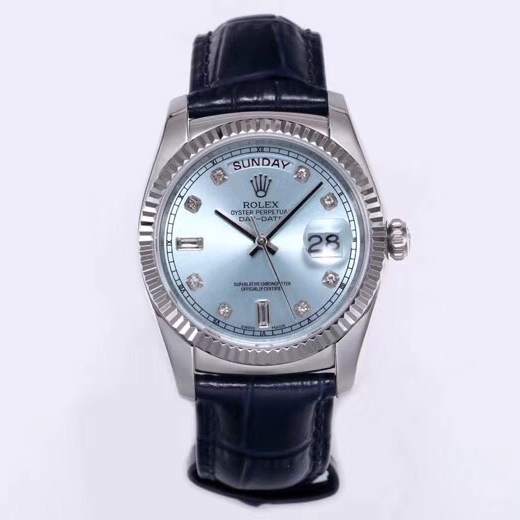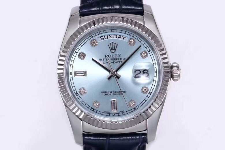 Rolex Day-Date 36mm 40mm Dial Diamond Blue Platinum Blue Leather 118139