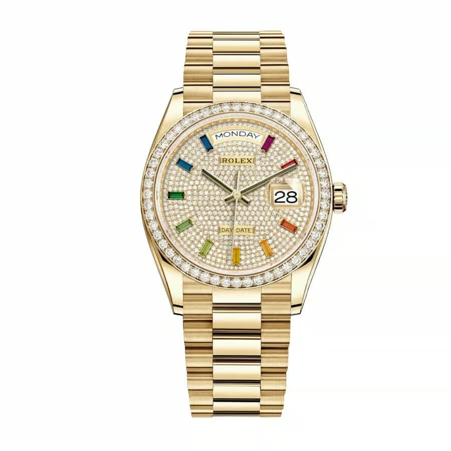 Rolex Day-Date 36mm Dial Rainbow Diamond Yellow Gold Gen 128238-0030
