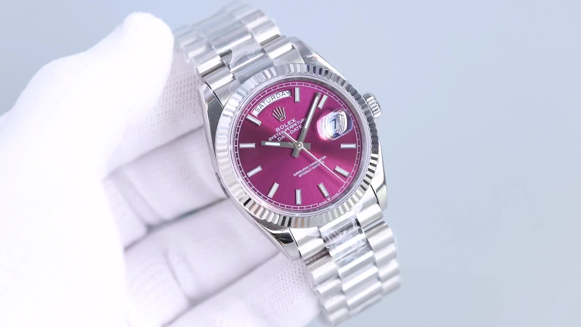 Rolex Day-Date 36mm Dial Cerise Purple Platinum Woman 118239-0304 Ladies