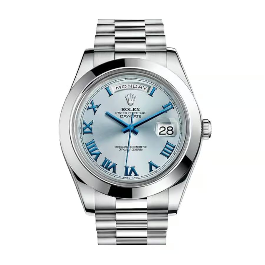 Rolex Day-Date II President 41mm Dial Ice Blue Steel Roman Numerals 218206-0043