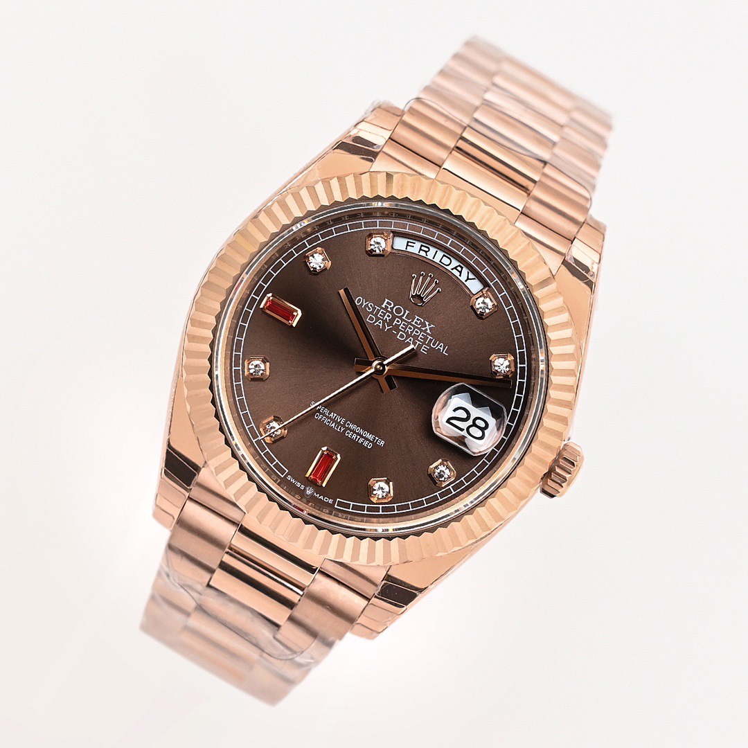 Rolex Day-Date 36mm 40mm Dial Chocolate Diamond Ruby Rose Gold 118235 Woman Ladies
