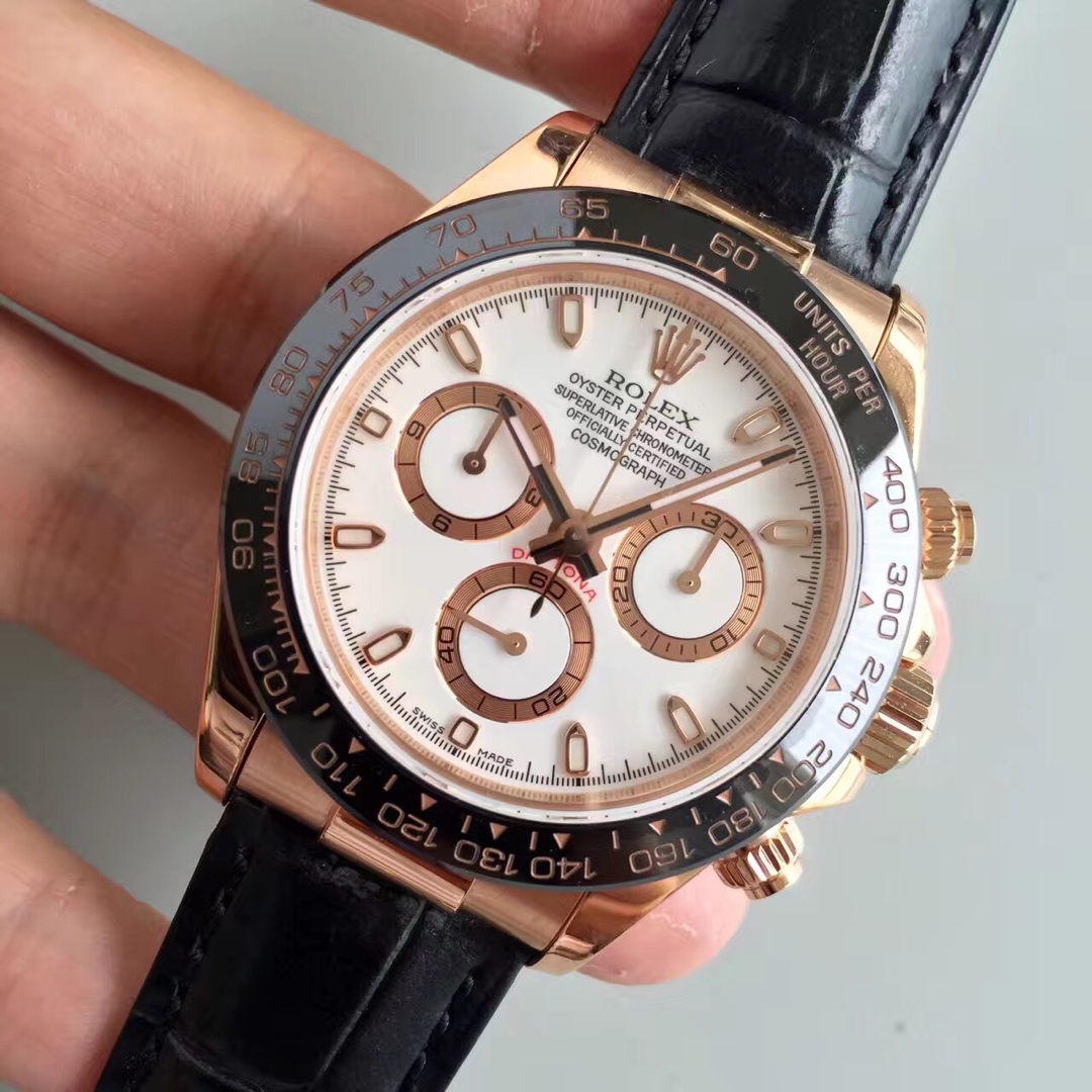 Rolex Daytona 40mm Dial Ivory White Rose Gold Black Leather 116515LN-0003