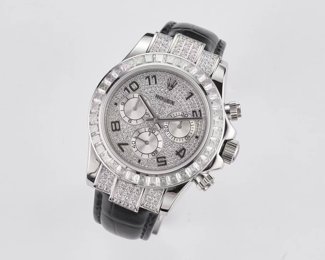 | Rolex Daytona Cosmograph 40mm Dial Full Diamond Gen Platinum Black Leather 116599TBR | |