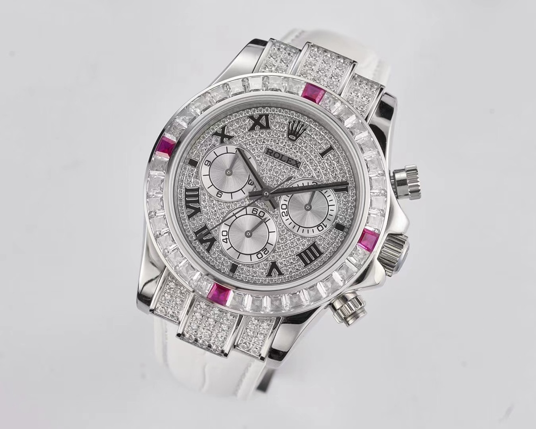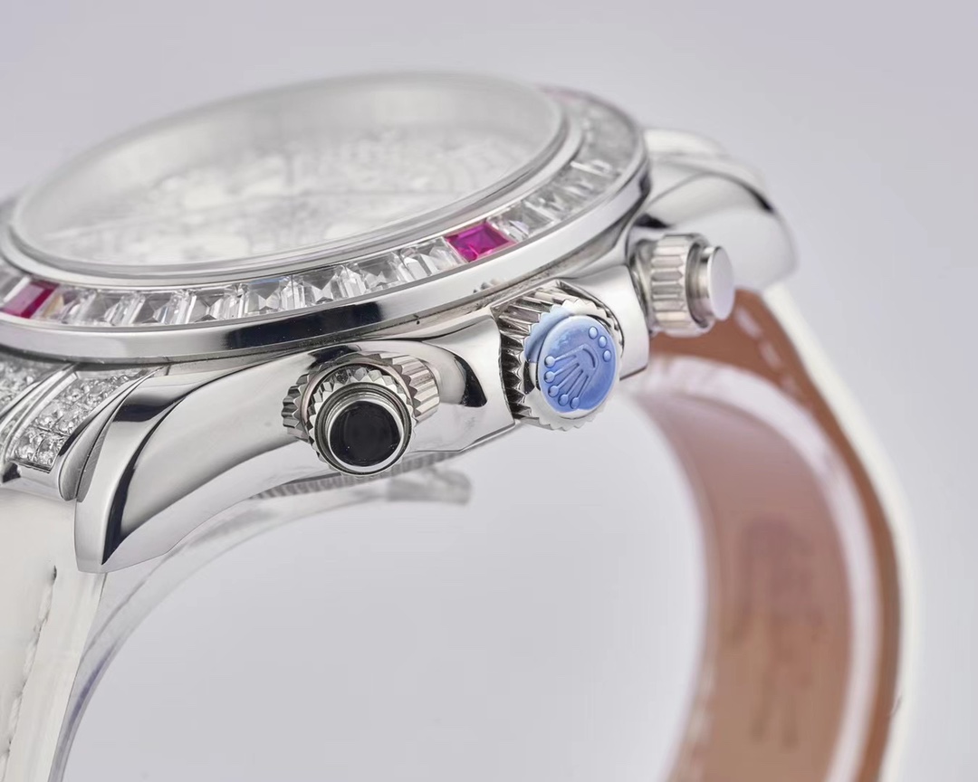 | Rolex Daytona Cosmograph 40mm Dial Full Diamond Gen Platinum White Leather 116599-4RU | |