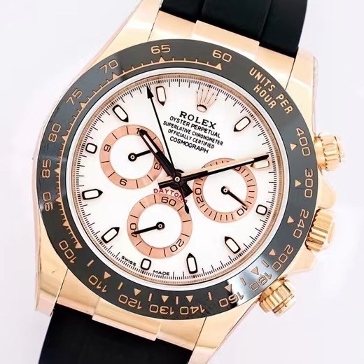 | Rolex Daytona Cosmograph 40mm Dial White Rose Gold Black Strap 116515LN-0019 | |