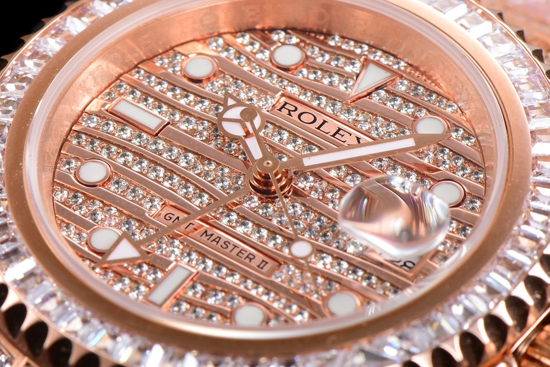 | Rolex GMT-Master II 40mm Full Diamond Dial Gen Bezel Rose Gold 116769TBR-74779B Benz | |