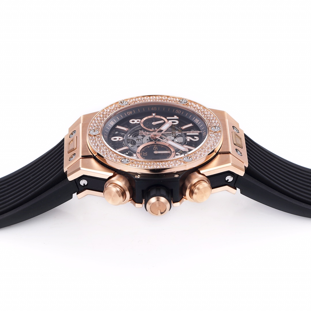 | Hublot Big Bang Unico 45mm Dial Rose Gold Diamond Bezel Black Rubber Strap 411.OX.118X.RX.1104 | |