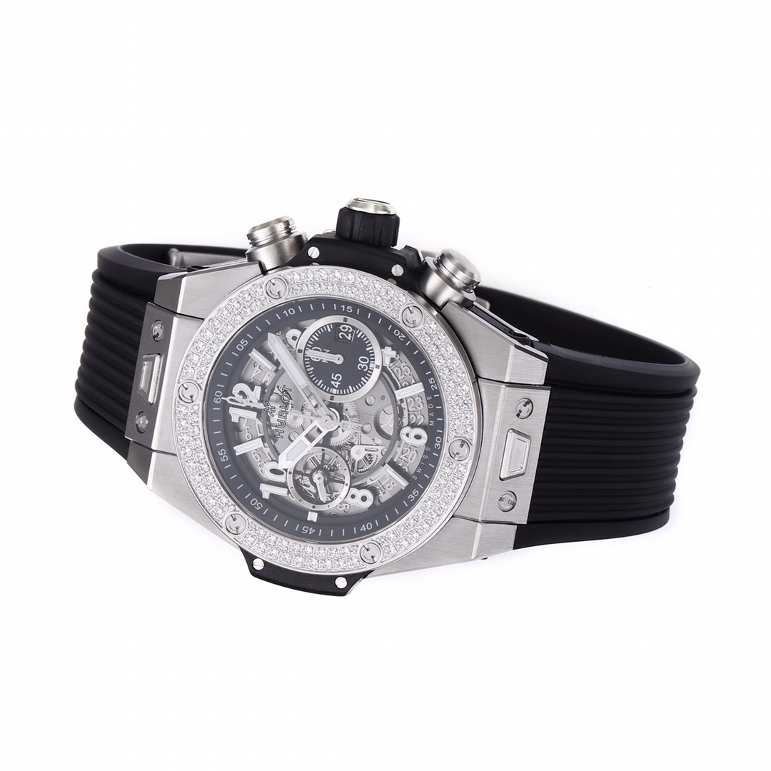 | Hublot Big Bang Unico 45mm Dial Titanium Diamond Bezel Black Rubber Strap 411.NX.117X.RX.1104 | |