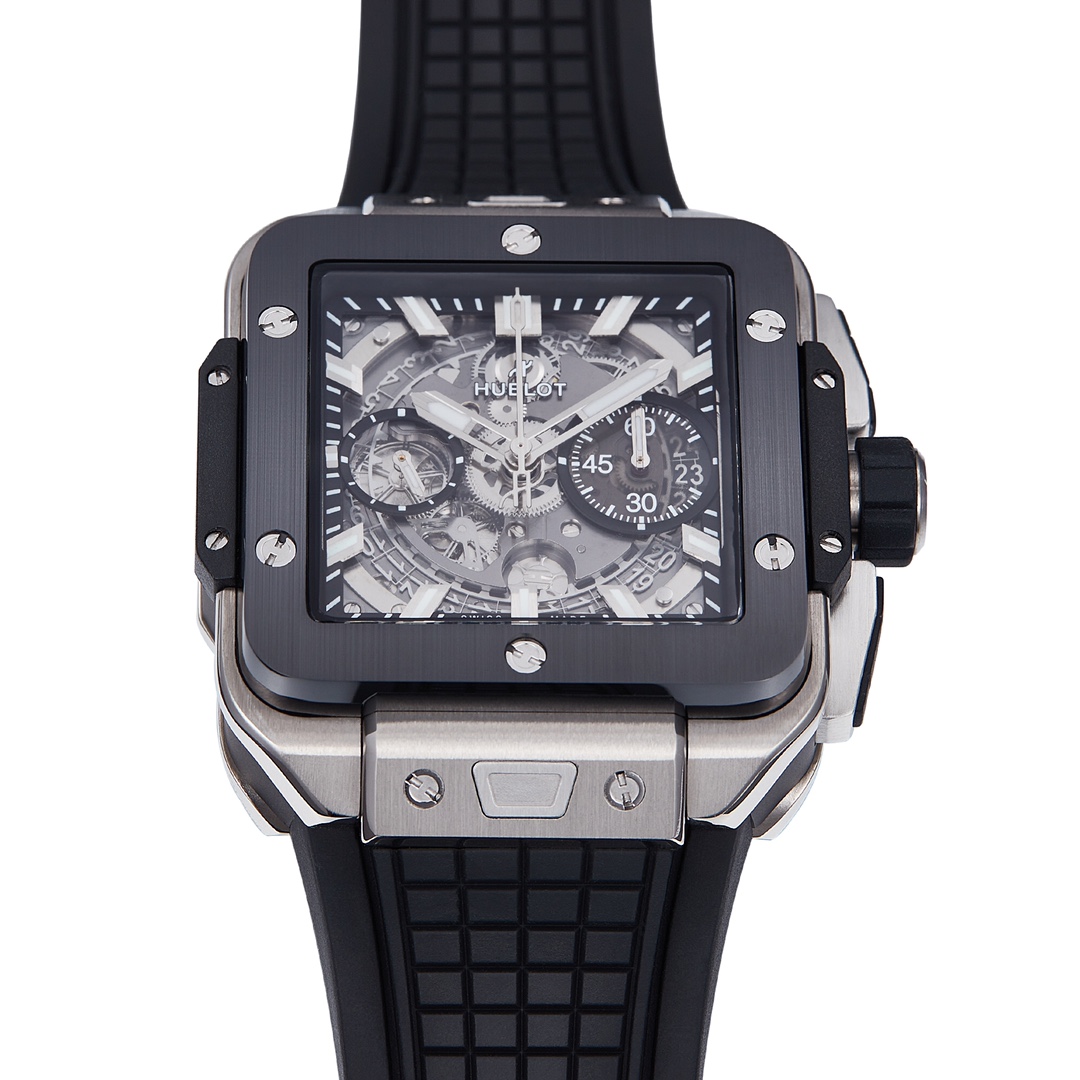 • Hublot Square Bang Unico 42mm Grey Dial Steel Black Bezel Black Rubber Strap 821.NM.0170.RX