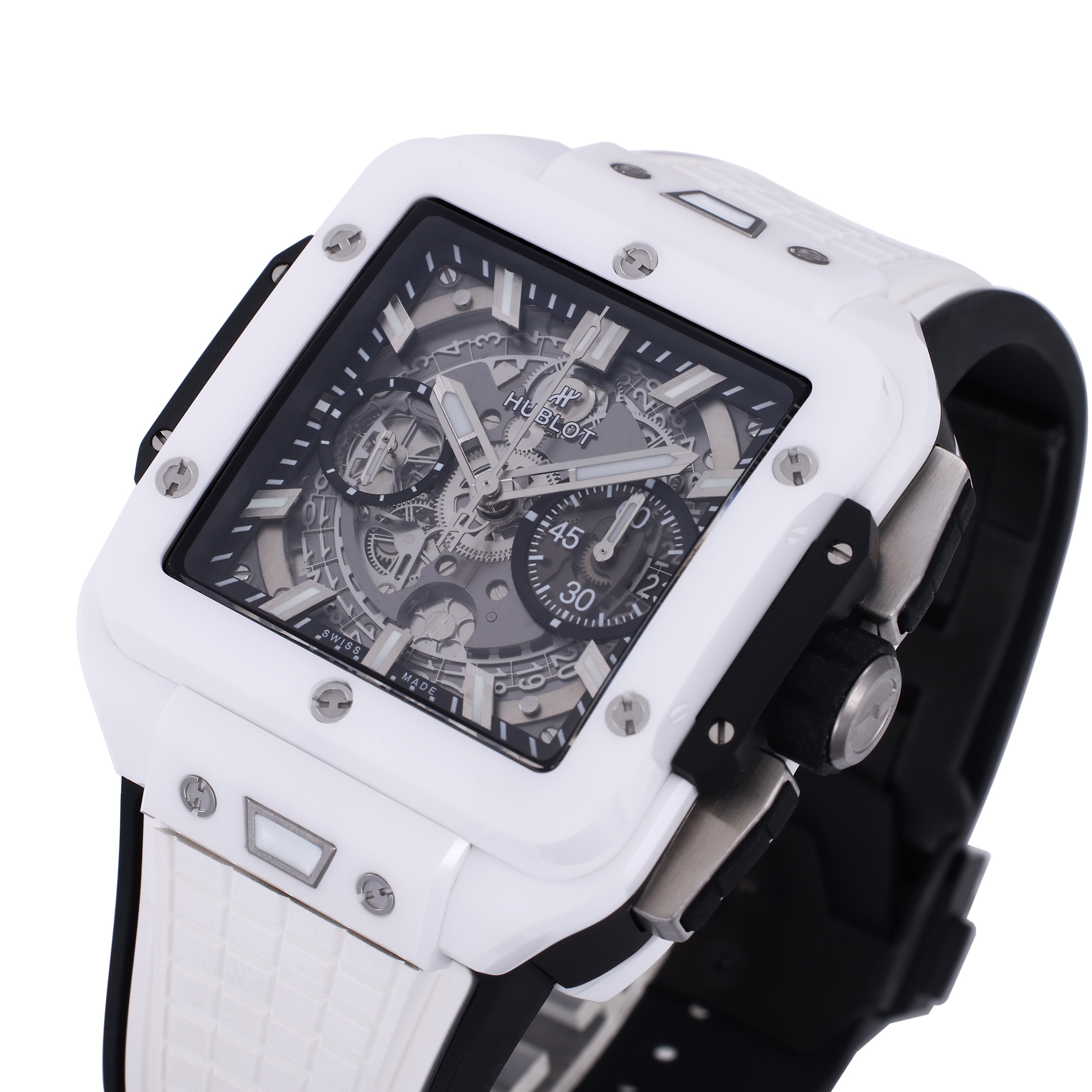 • Hublot Square Bang Unico 42mm Grey Dial White Ceramic Bezel White Black Rubber Strap 821.HX.0170.RX