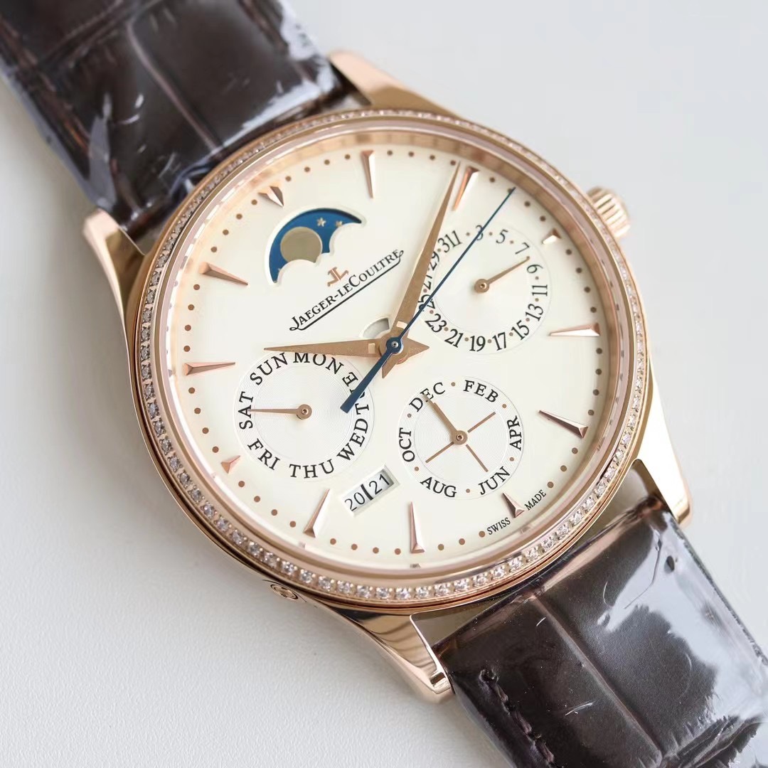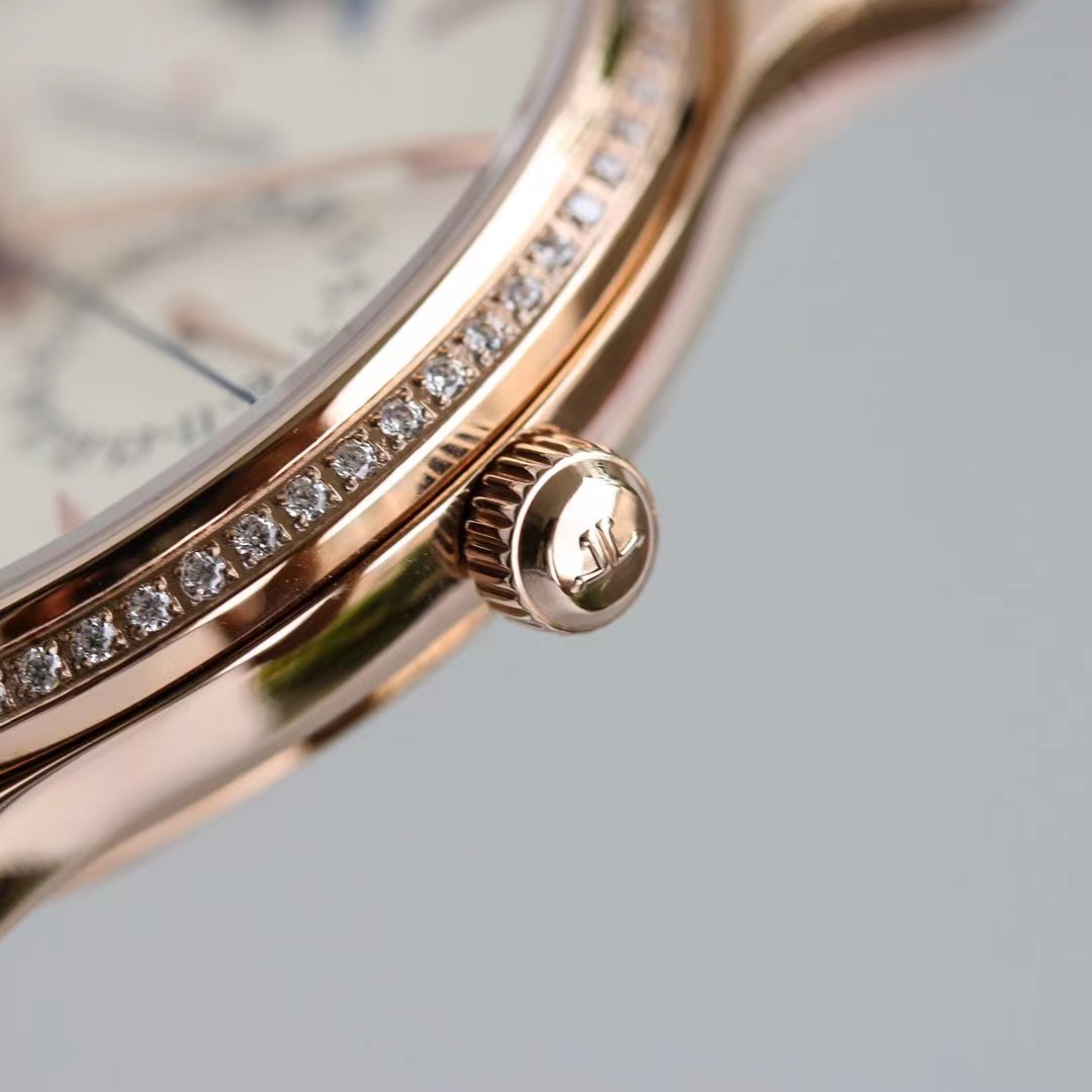 Jaeger-LeCoultre Master Ultra Thin 39mm Beige Dial Diamond Pink Gold Bezel Brown Leather Strap Q1142501 Ladies