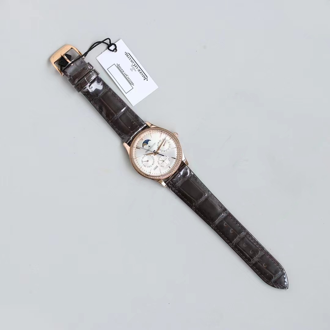 Jaeger-LeCoultre Master Ultra Thin 39mm White Dial Diamond Pink Gold Bezel Brown Leather Strap Q1142501 Ladies