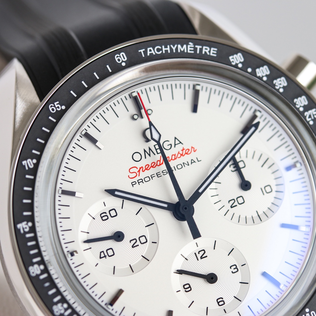 Omega Speedmaster series lunar disk new login 310.30.42.50.04.001 White disk a relatively big highlight is the white dial with red "speedmaster" words.