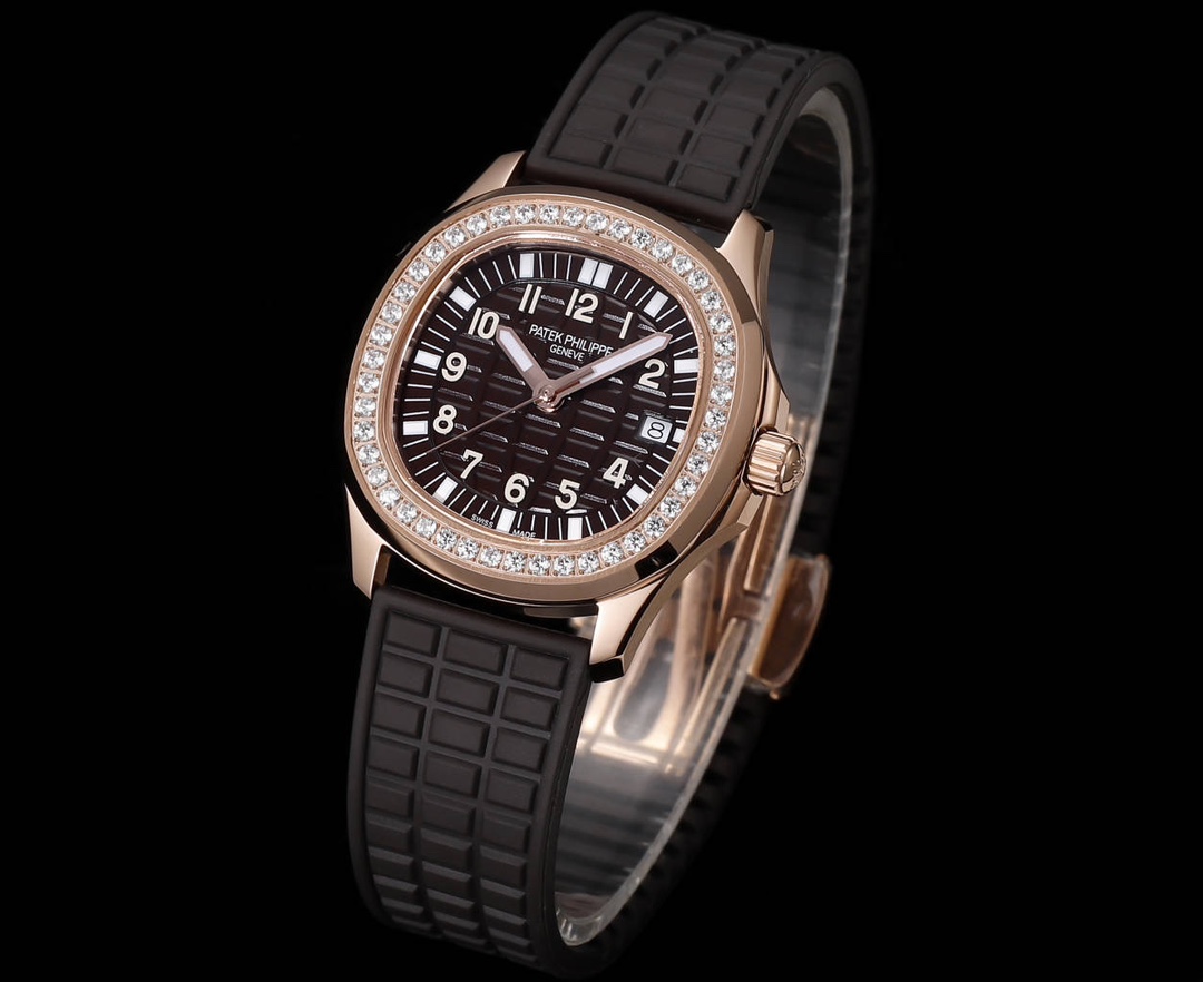 | Patek Philippe Aquanaut 35.6mm Brown Dial Rose Gold Diamond Bezel Brown Rubber Strap 5068R-001 Woman Ladies | |