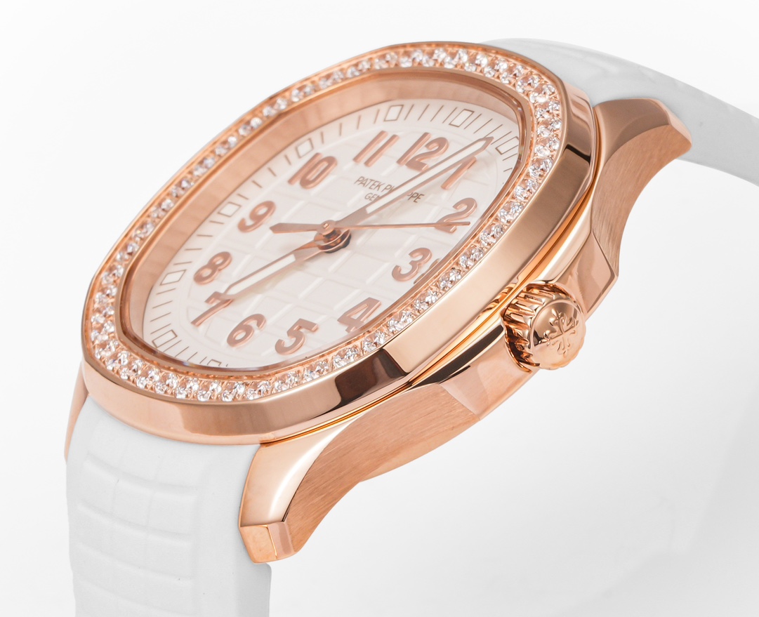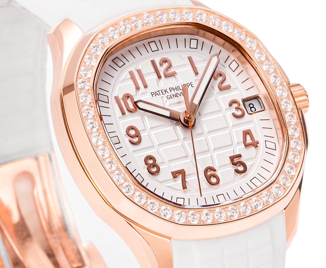 • Patek Philippe Aquanaut 38.80mm White Dial Rose Gold Diamond Bezel White Rubber Strap 5268/200R-001 Woman Ladies