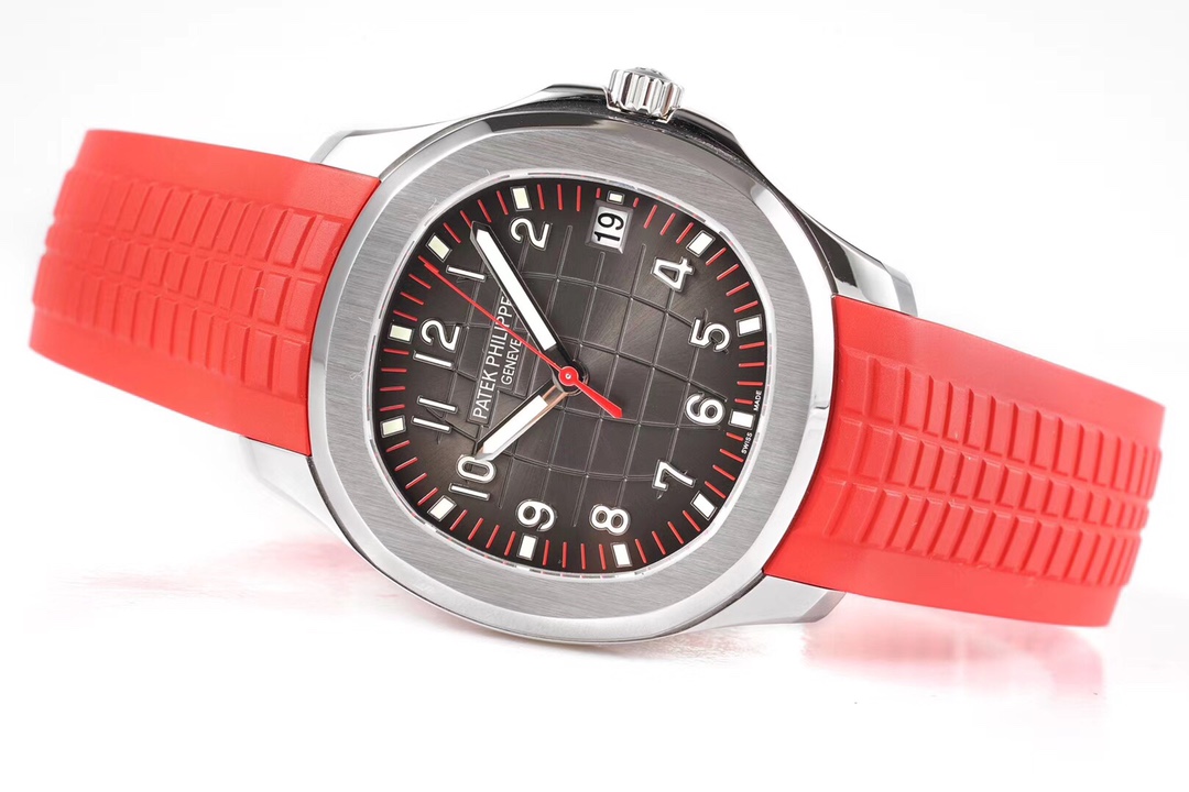 | Patek Philippe Aquanaut 40mm Black Dial Steel Bezel Red Strap 5167A-012 | |