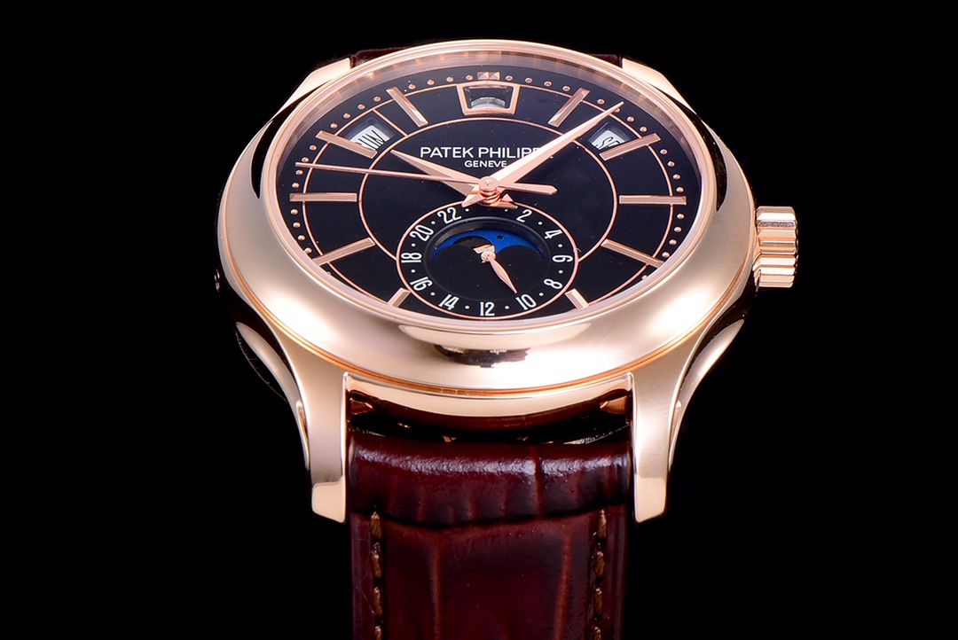 | Patek Philippe Complications 40mm Black Dial Rose Gold Bezel Black Leather Strap 5205R-010 | |