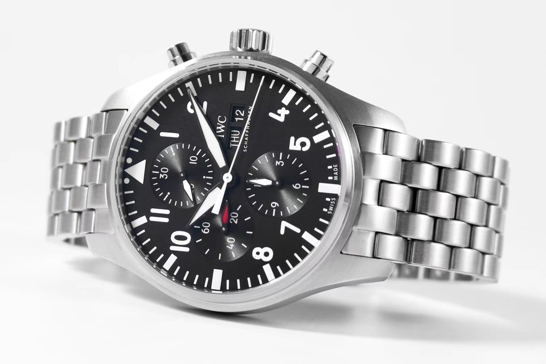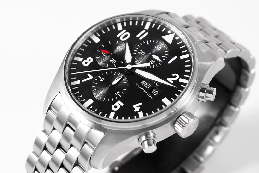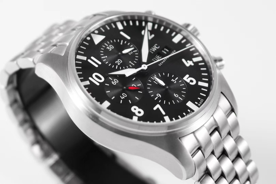 | IWC Pilot's Watches 43mm Black Dial Steel Bezel Steel Strap IW377717 | |