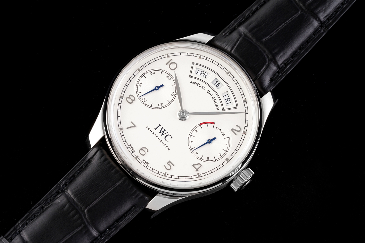 | IWC Portugieser 44.2mm White Dial Steel Bezel Black Leather Strap IW503501 | |