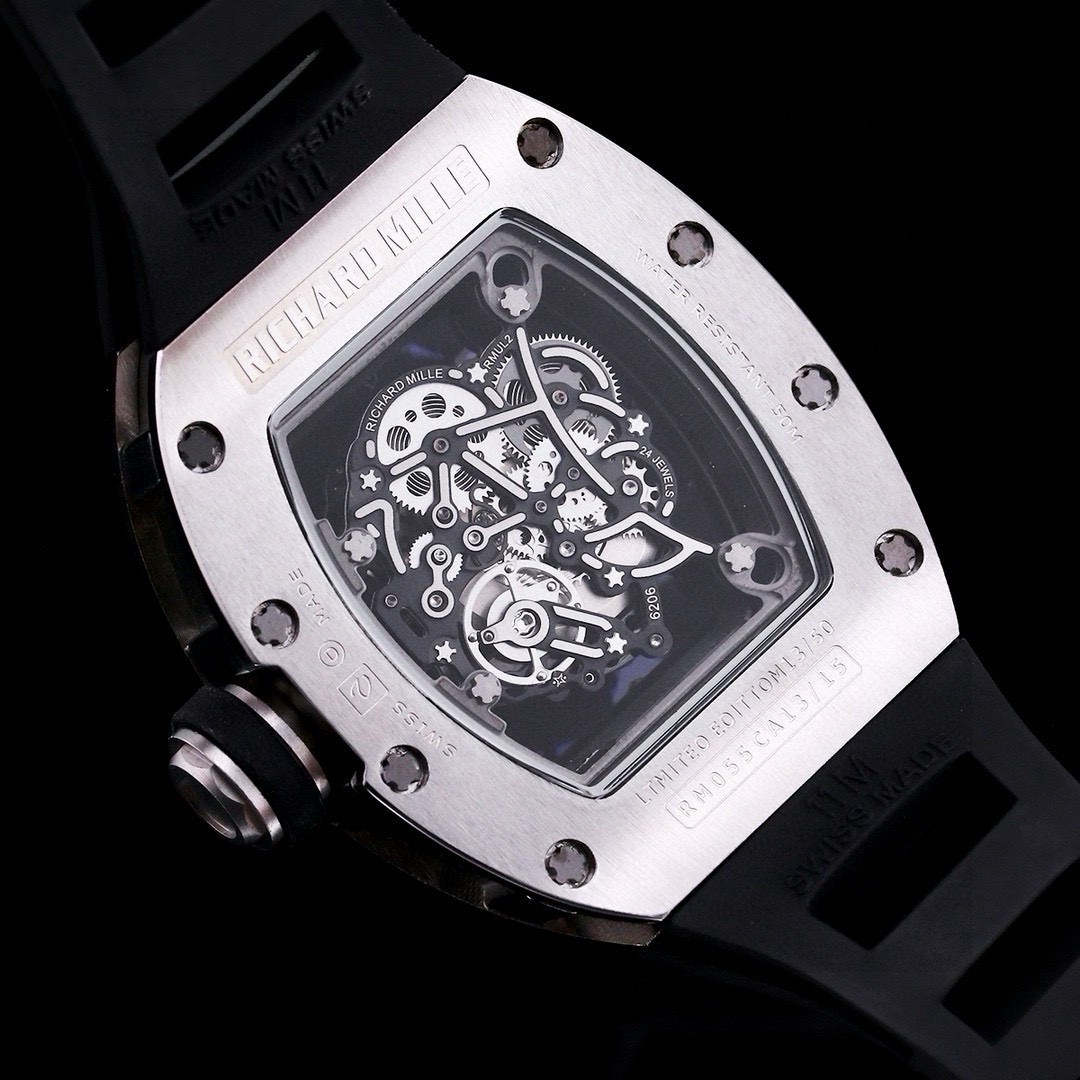 | Richard Mille RM 055 49.90mm x 42.70mm Grey Hollow Dial Titanium Bezel Black Rubber Strap | |