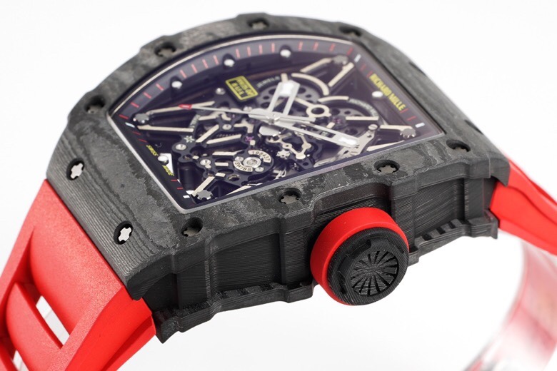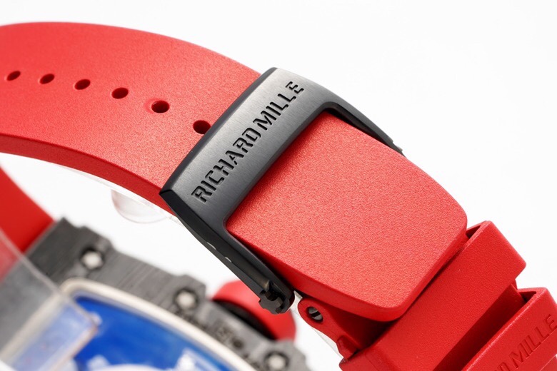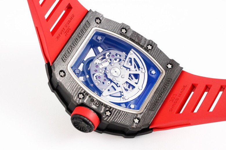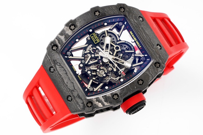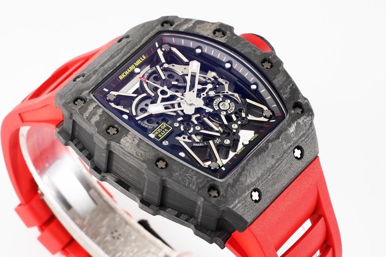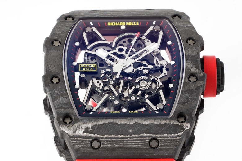 • Richard Mille RM35-02 49.94mm x 44.50mm Grey Hollow Dial Black Carbon Fiber Bezel Red Rubber Strap