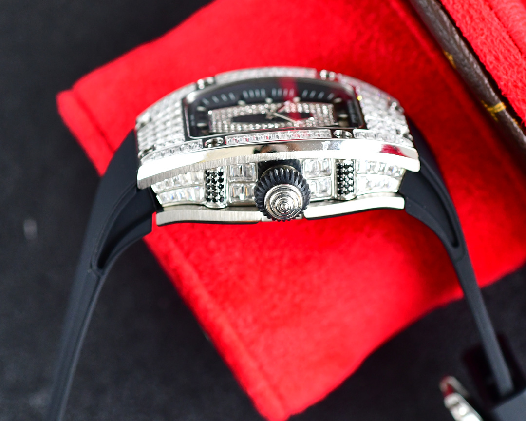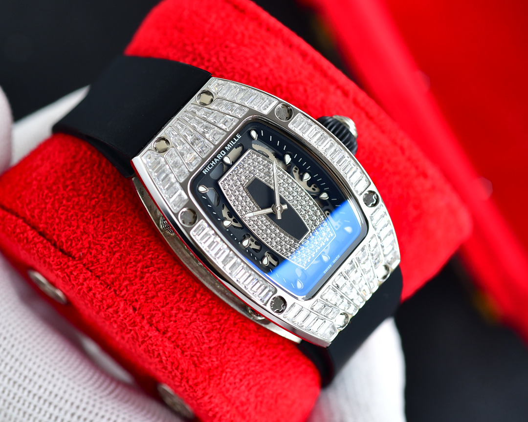| Richard Mille RM07-01 45.66mm x 31.40mm Diamond Black Dial Platinum Square Diamond Bezel WhiteBlack Rubber Strap Ladies Woman | |