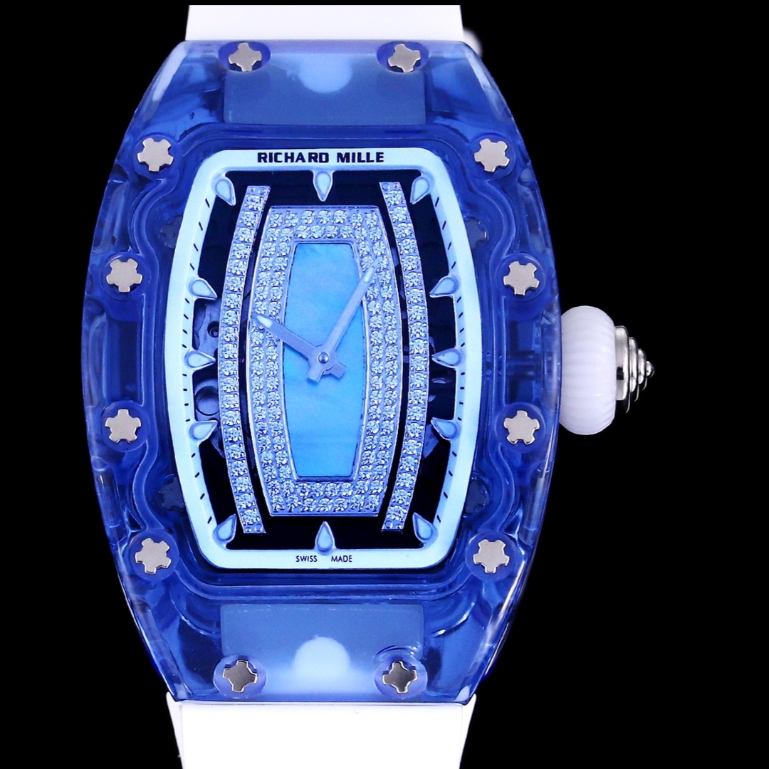 | Richard Mille RM07-02 45.66mm x 31.40mm Diamond Dial Blue Transparent Bezel White Rubber Strap Ladies Woman | |