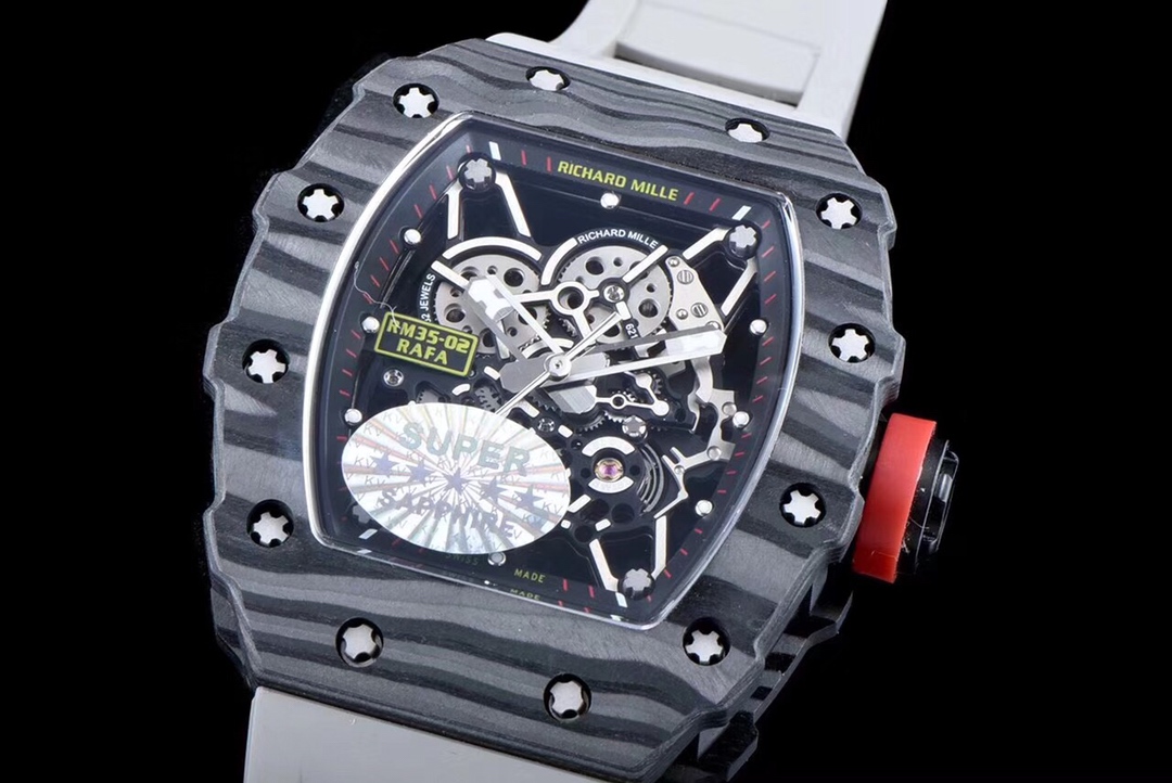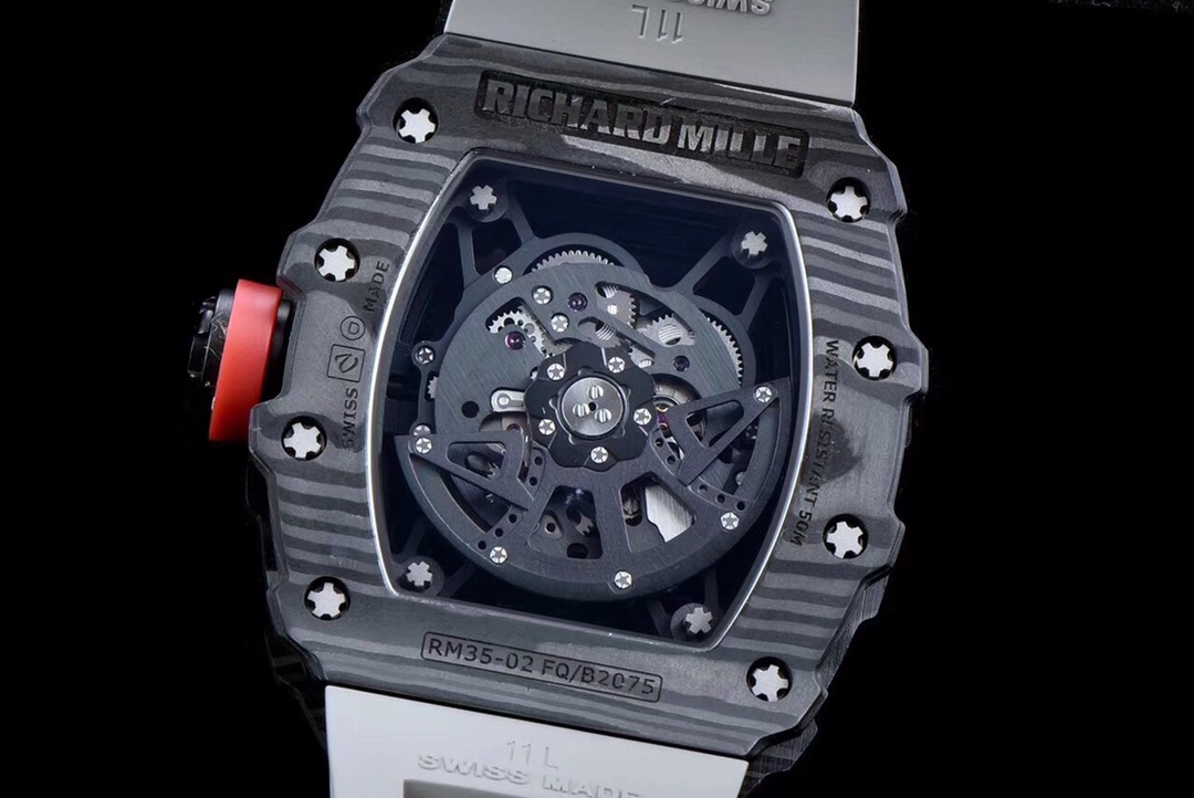 | Richard Mille RM35-02 49.94mm x 44.50mm Grey Hollow Dial Black Carbon Fiber Bezel Grey Rubber Strap | |