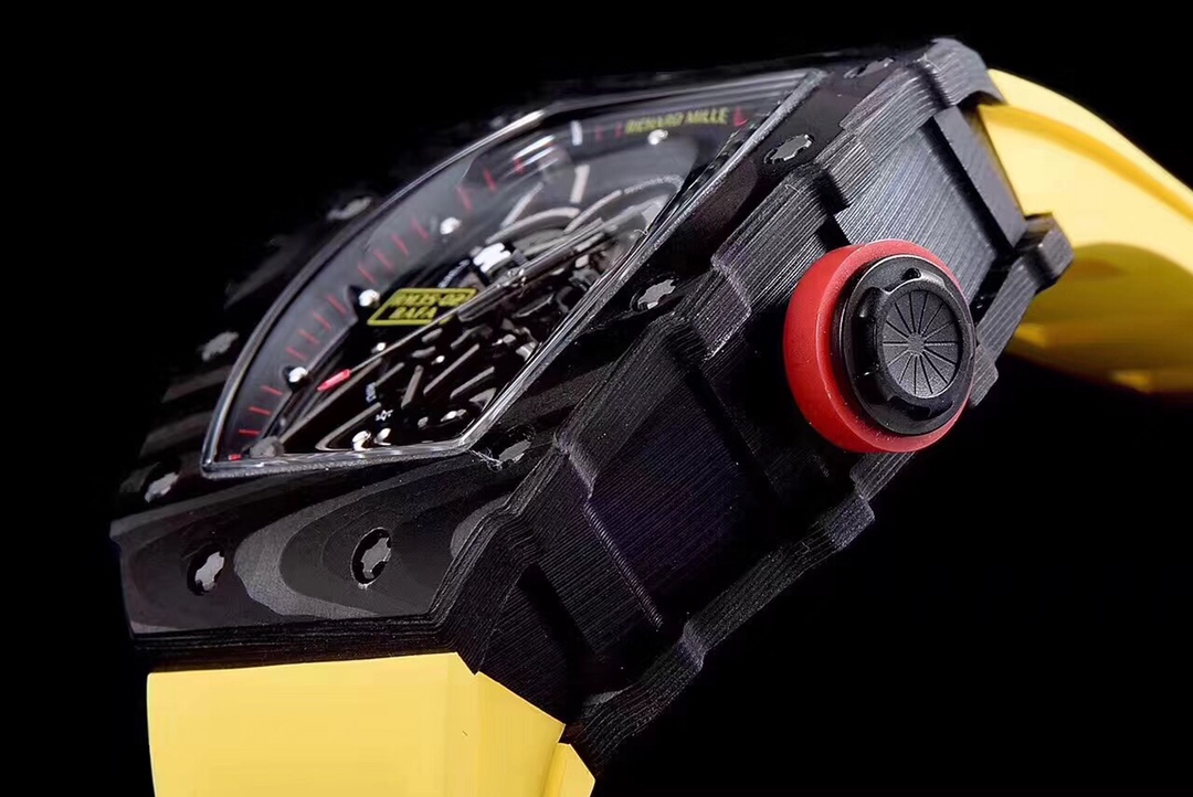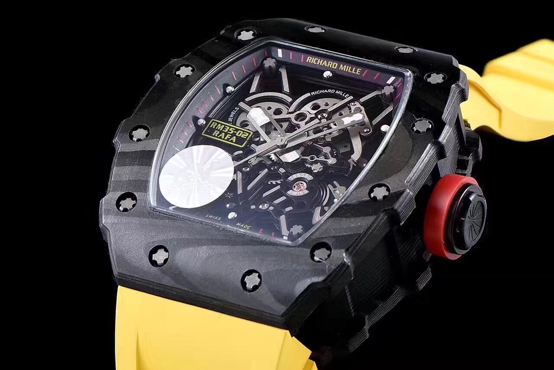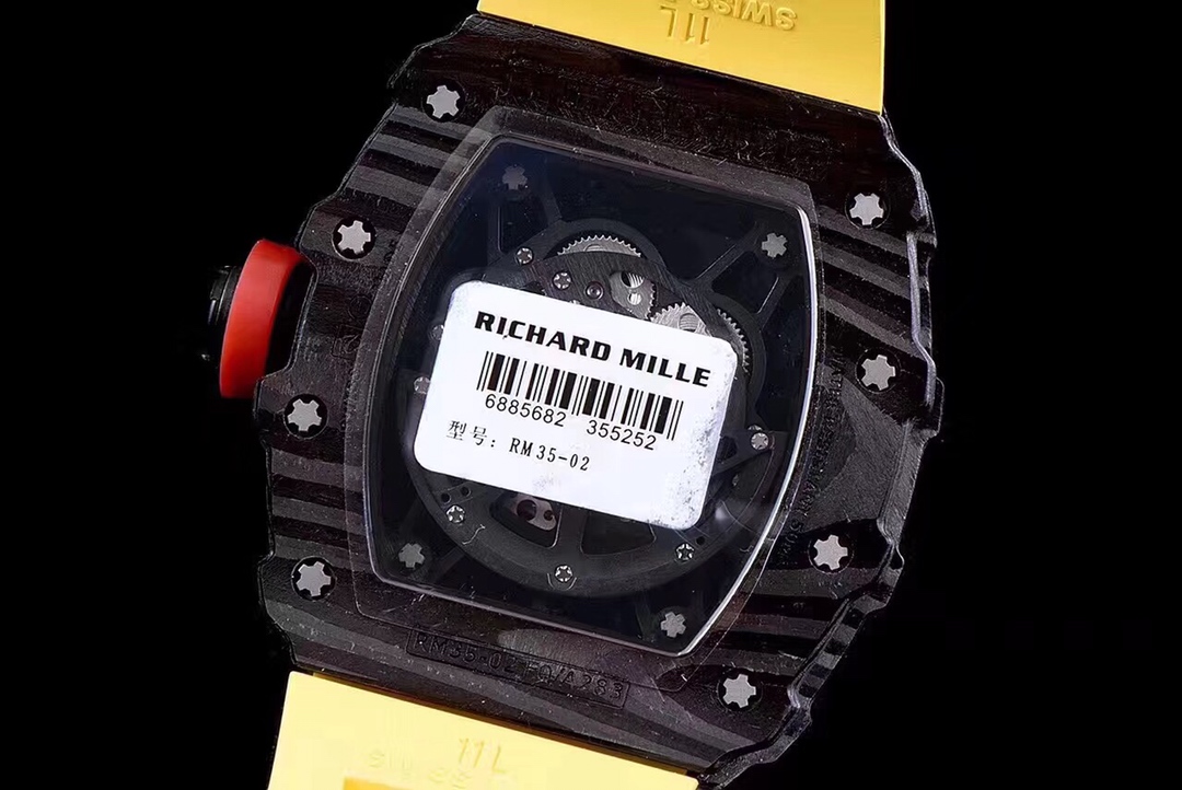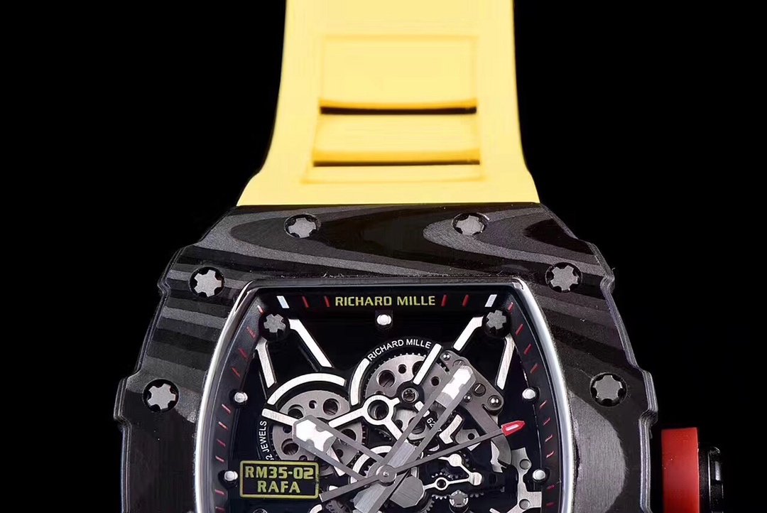 | Richard Mille RM35-02 49.94mm x 44.50mm Grey Hollow Dial Black Carbon Fiber Bezel Yellow Rubber Strap | |