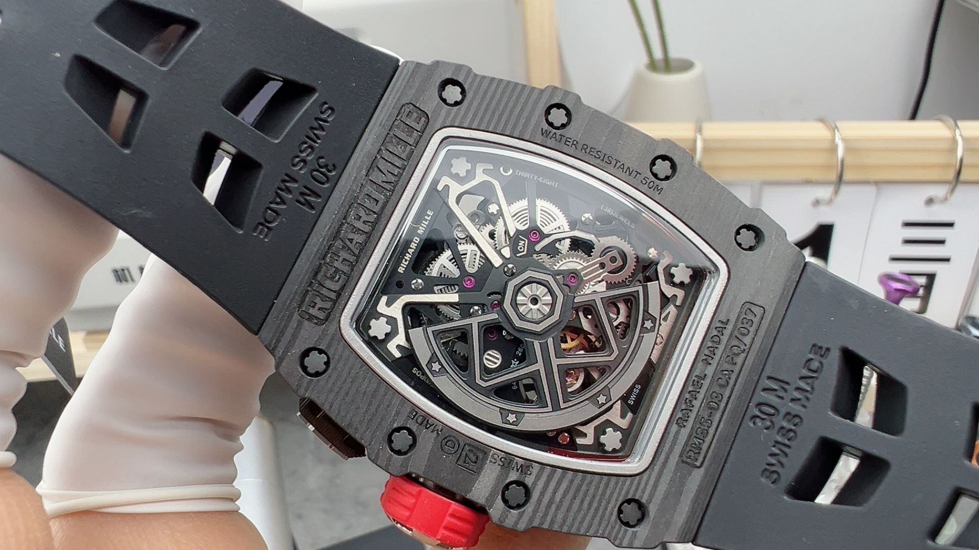 | Richard Mille RM35-03 RAFAEL NADAL 43.15mm x 49.95mm Grey Hollow Dial Black Carbon Fiber Bezel Black Rubber Strap | |