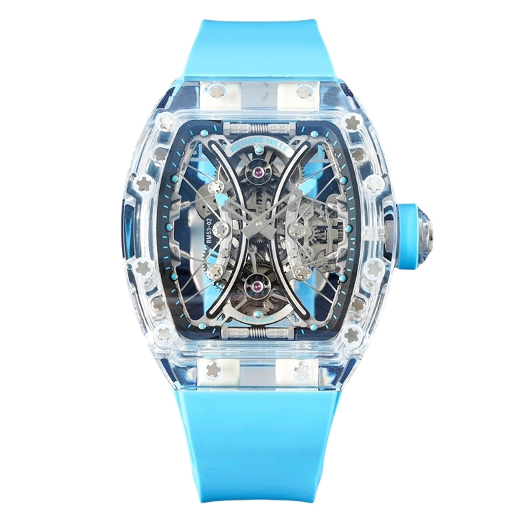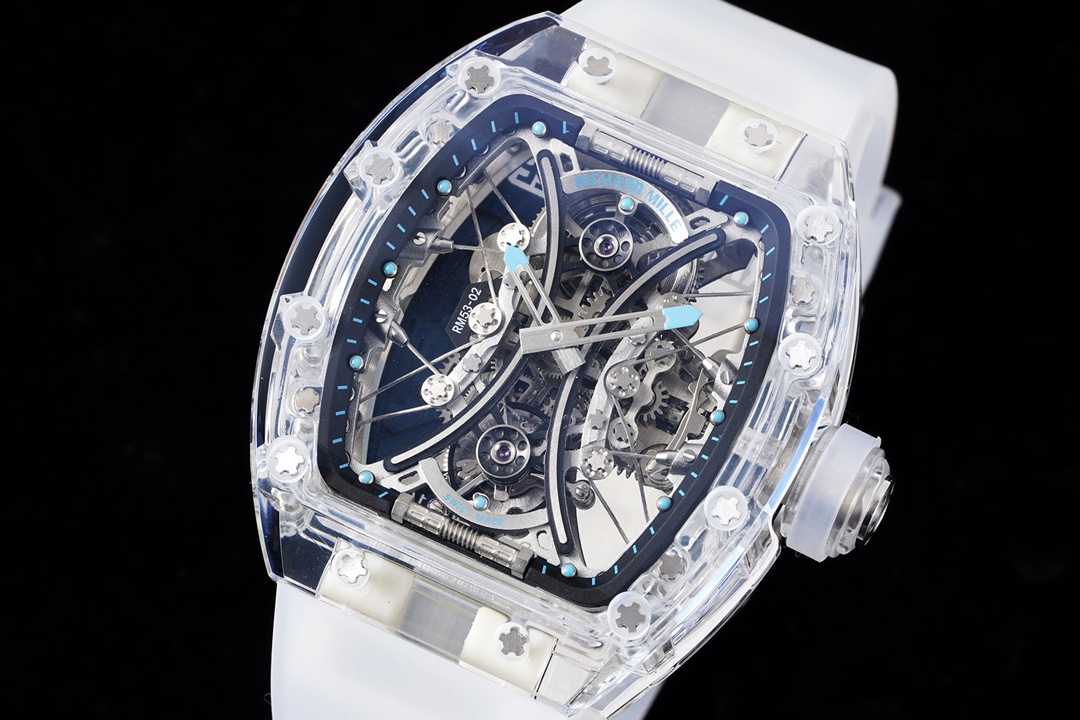 Richard Mille RM 53-02 44.50mm x 49.94mm Hollow Dial White Transparent Bezel Blue Rubber Strap Pablo Mac Donough
