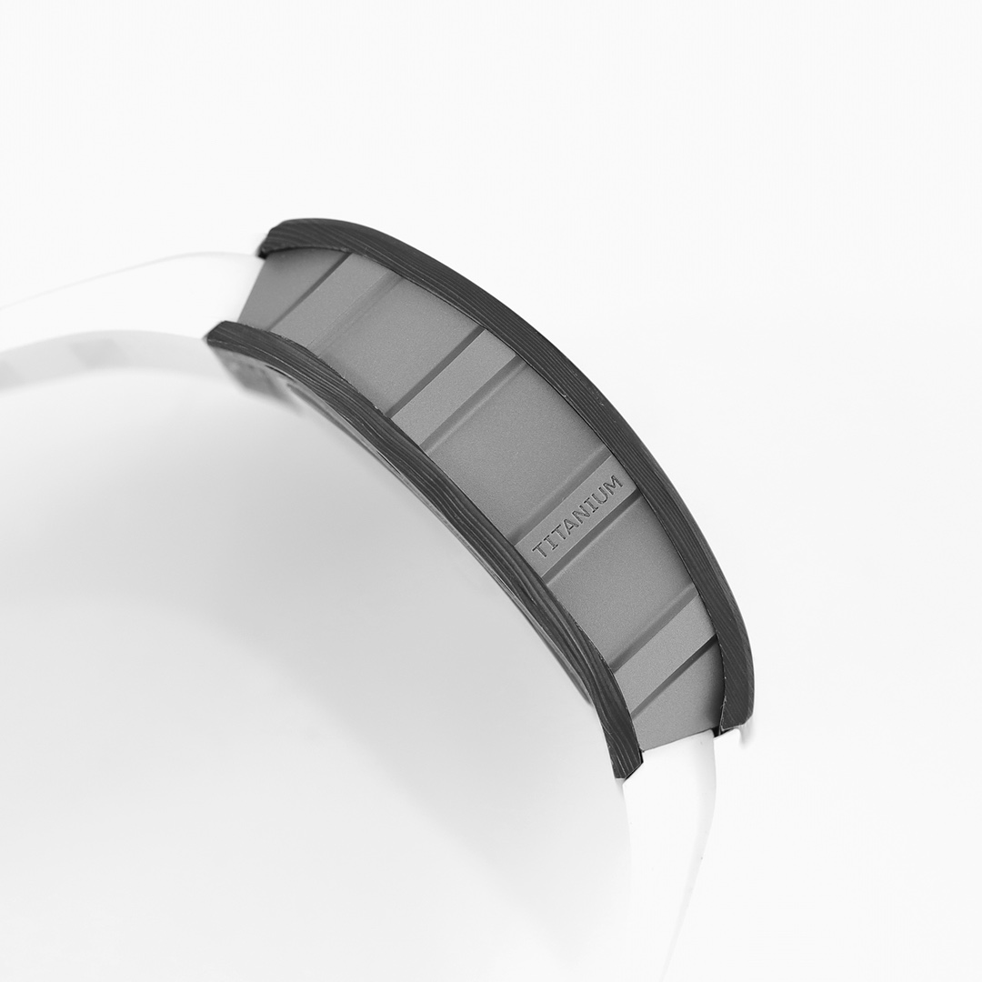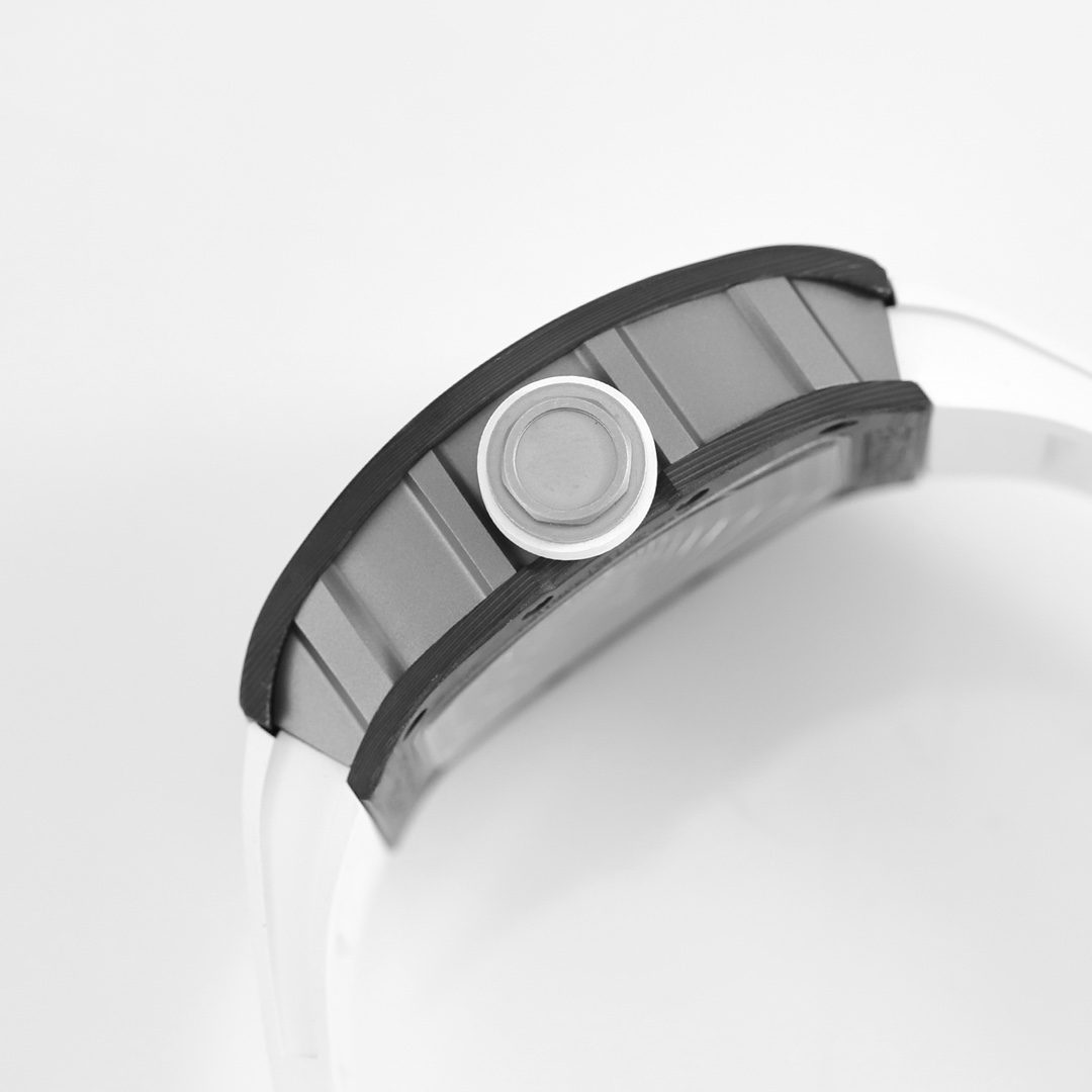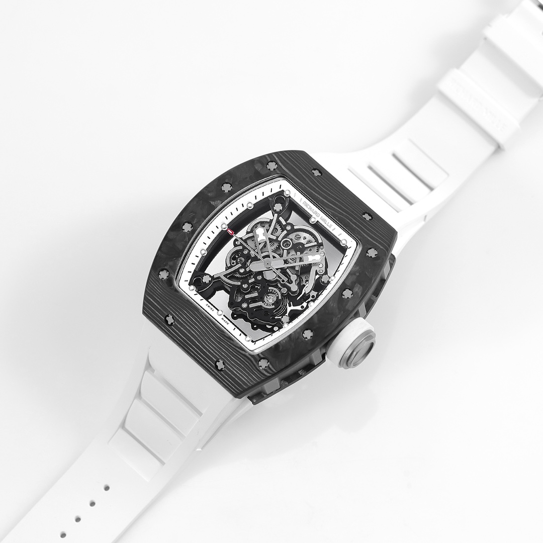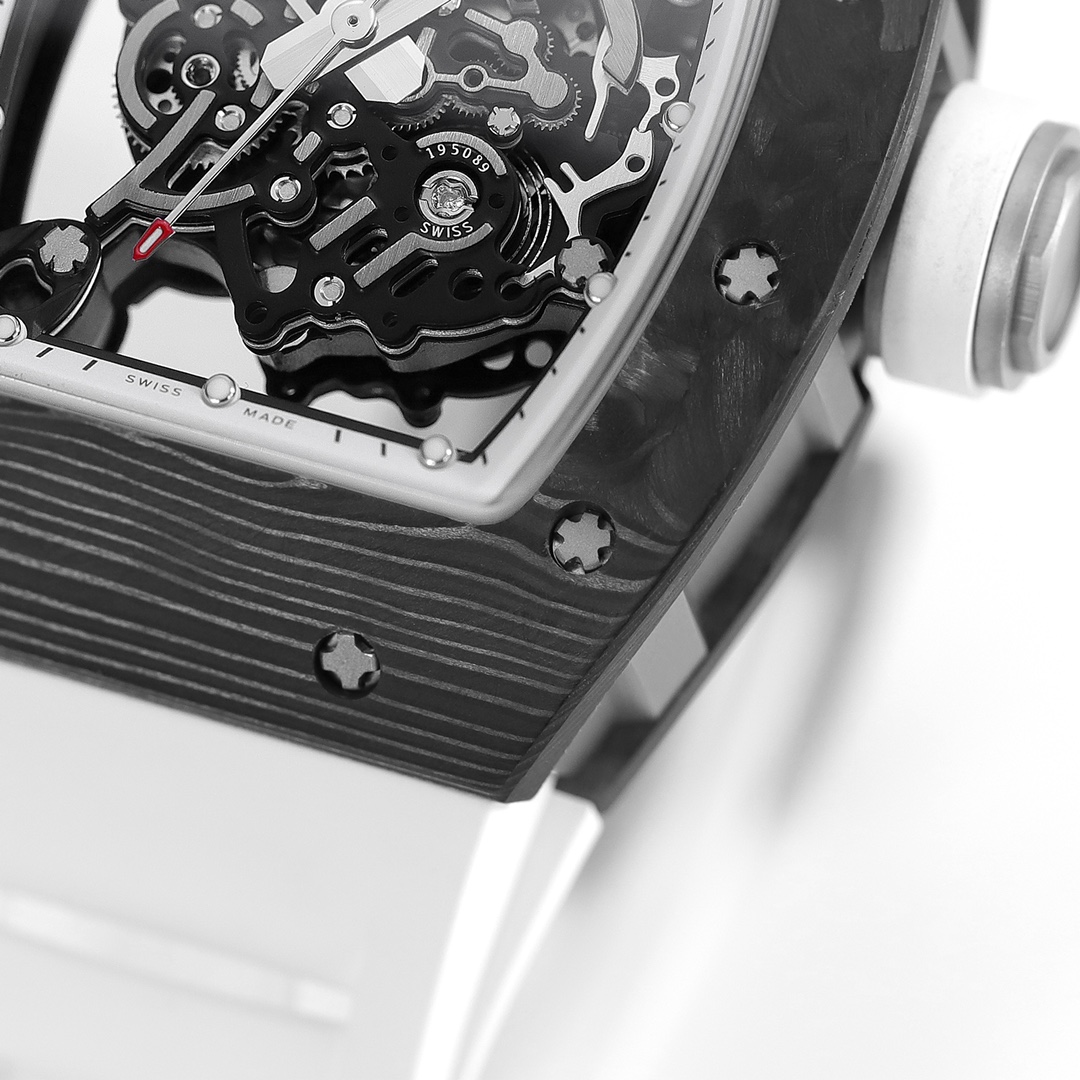 | Richard Mille RM 055 49.90mm x 42.70mm Grey Hollow Dial White Black Carbon Fiber Bezel White Rubber Strap | |