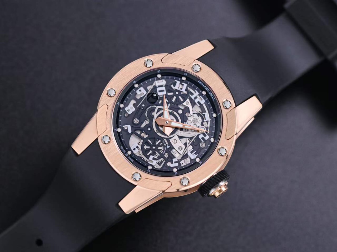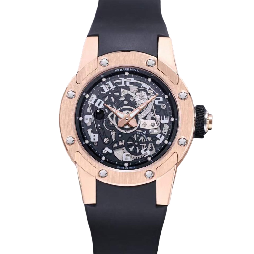 Richard Mille RM63-01 42.7mm Black Dial Rose Gold Bezel Black Rubber Strap