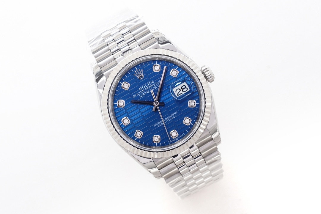 | Rolex Datejust 36mm Water Ripples Blue Diamond Dial Steel Bezel 126234-0057 | |