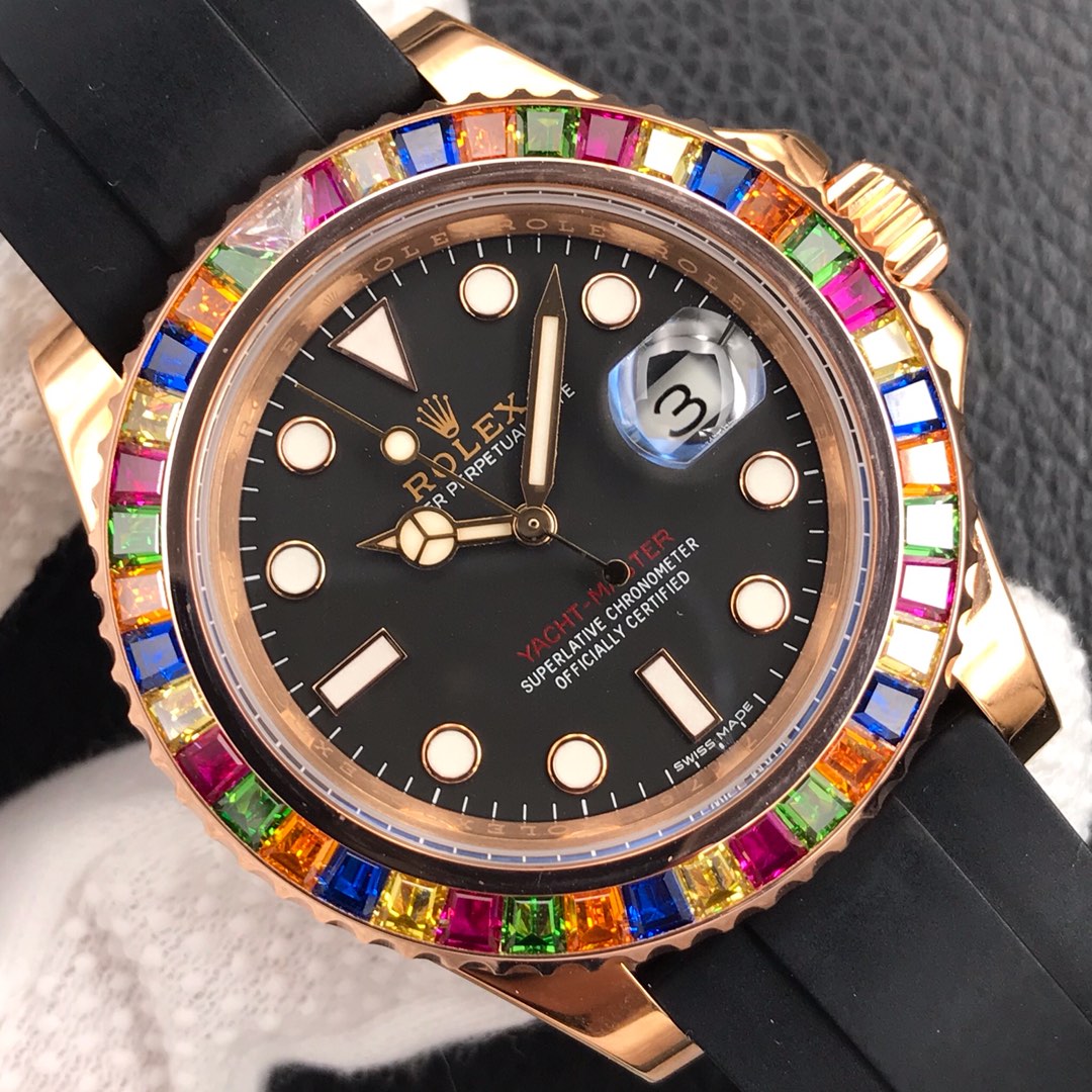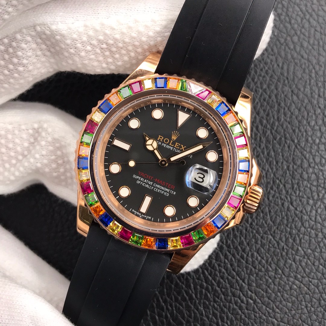 | Rolex Yacht-Master 40mm Black Dial Rose Gold Candy Gen Bezel Rubber 116695SATS | |
