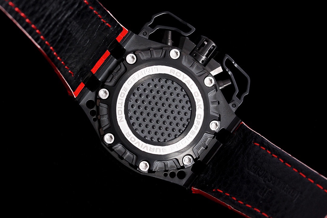 | Audemars Piguet Royale Oak Offshore Survivor 42mm Black Dial Black Ceramic Bezel Red Leather 26165 | |