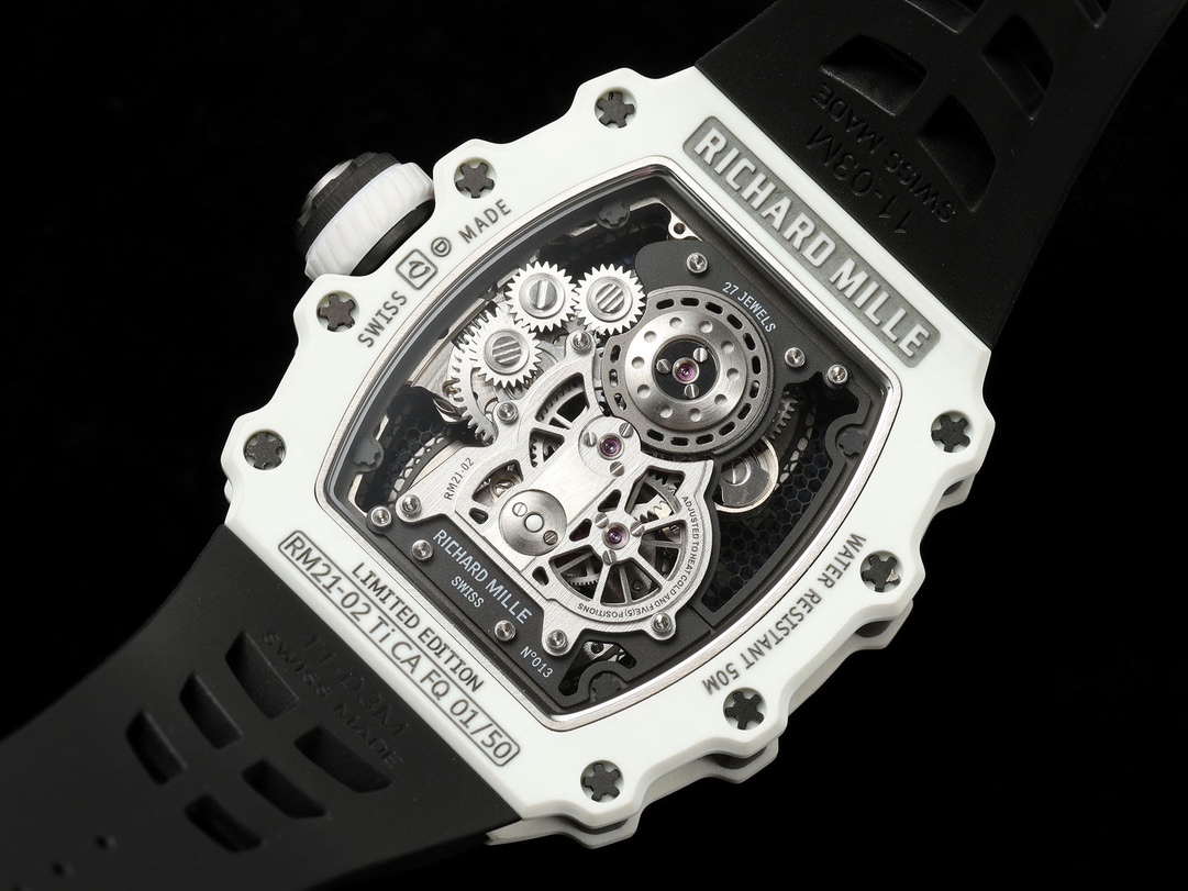 • Richard Mille RM21-02 Ti CA FQ 42.68mm x 50.12mm Grey Dial Black White Ceramics Bezel Black Rubber Strap